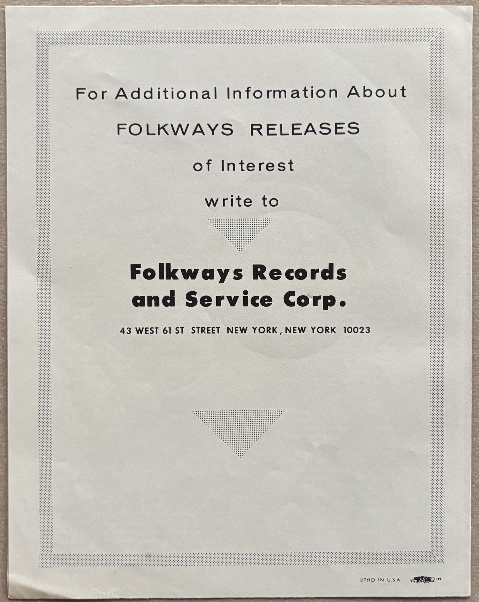 w.Booklet. 1961 Folkways Records FW 8757. Minor foxing on cover.