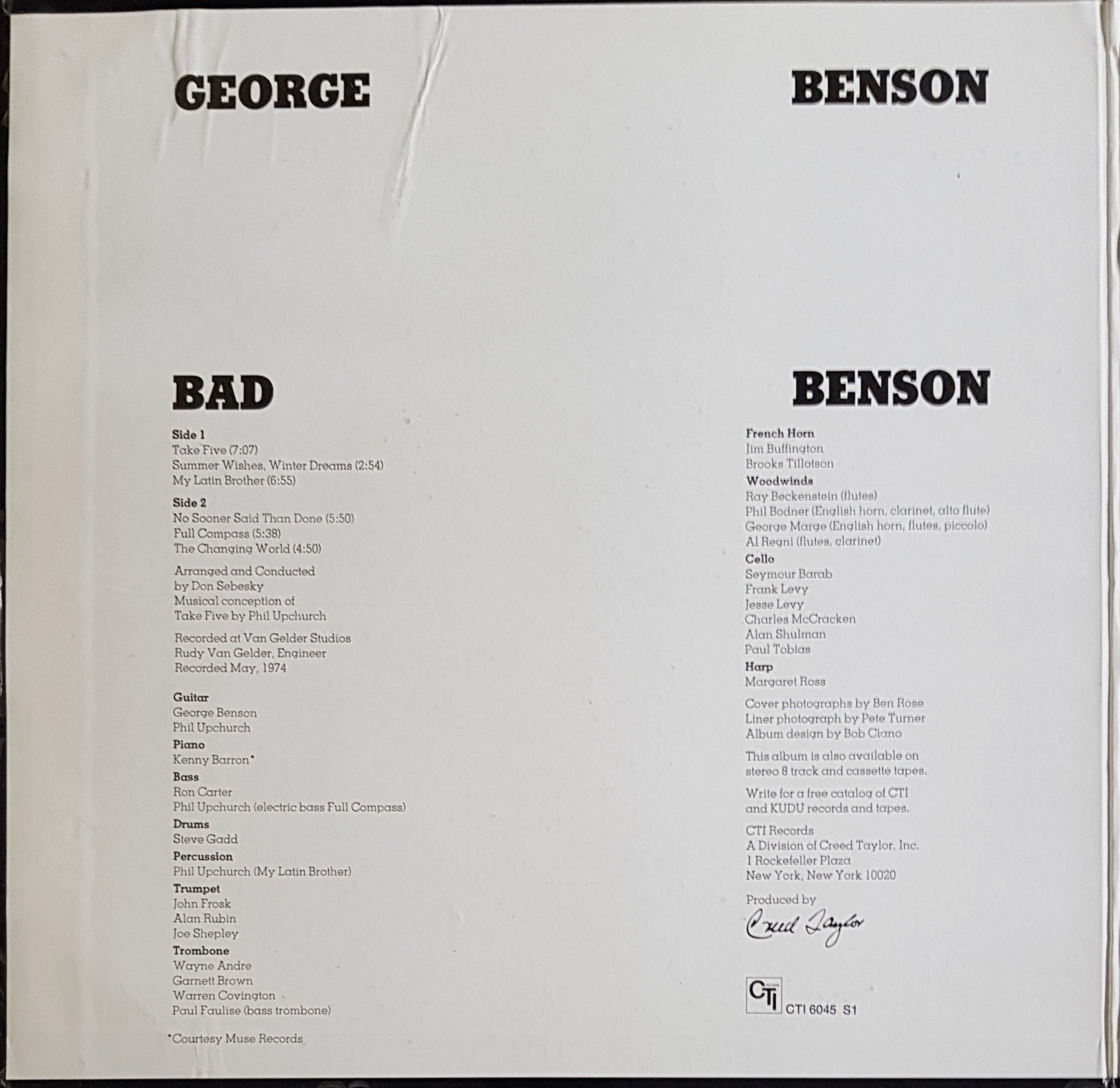 Gatefold Cover. 1974 CTI Records CTI 6045 S1. Very clean copy