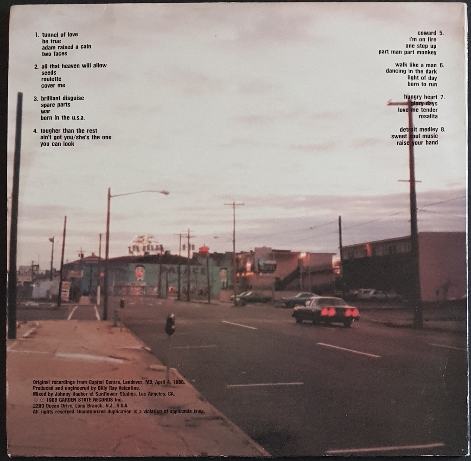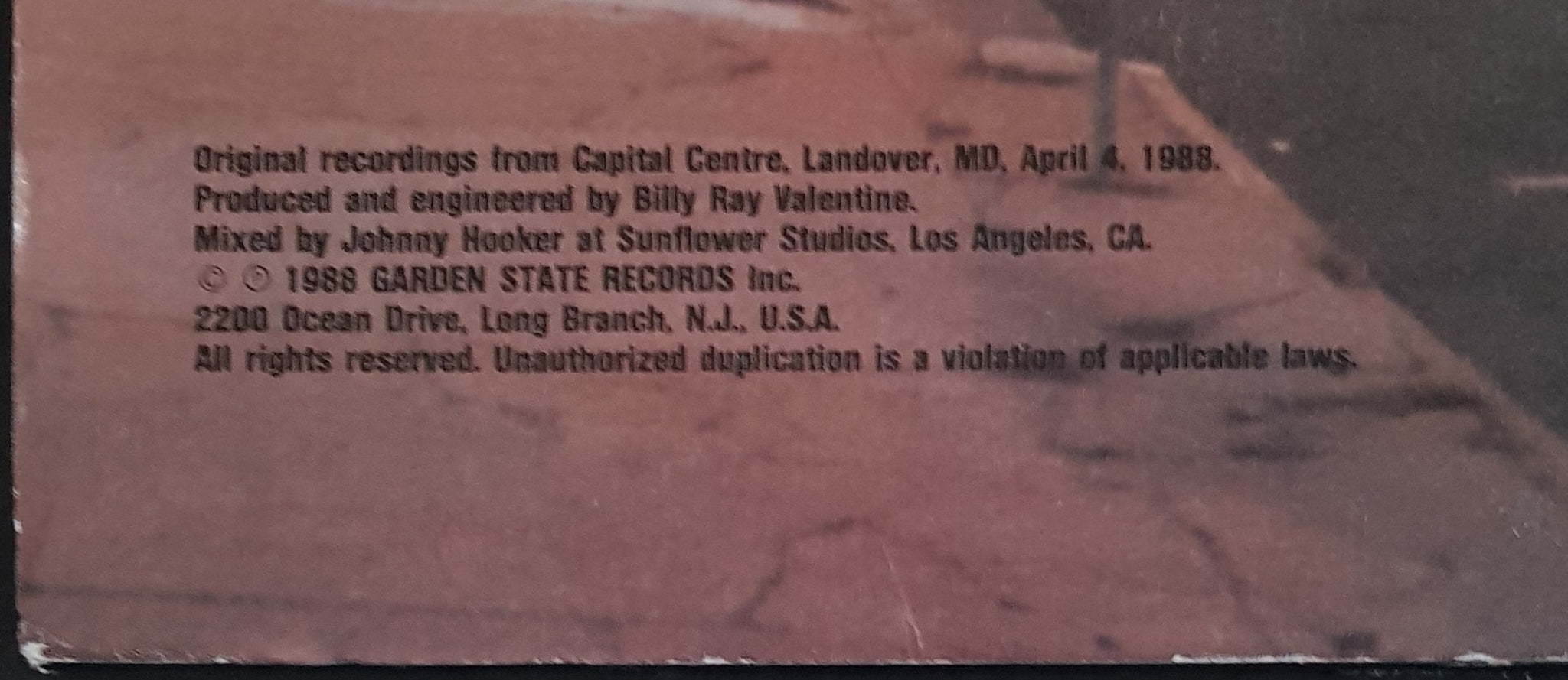 1988 Garden State Records. Recorded at The Capitol Centre, Landover, MD. April 4, 1988. Creases, edge wear and small seam split on cover.