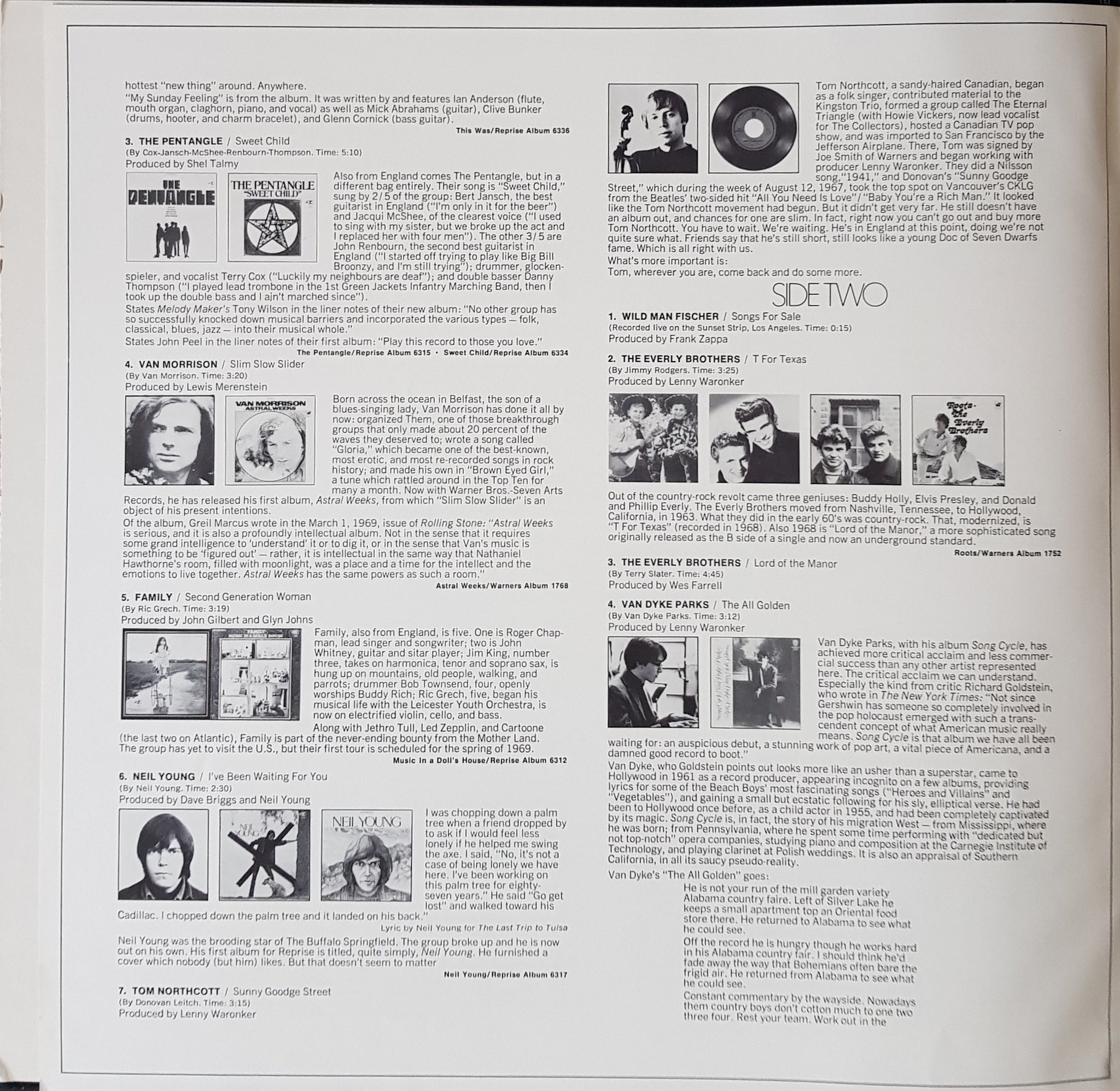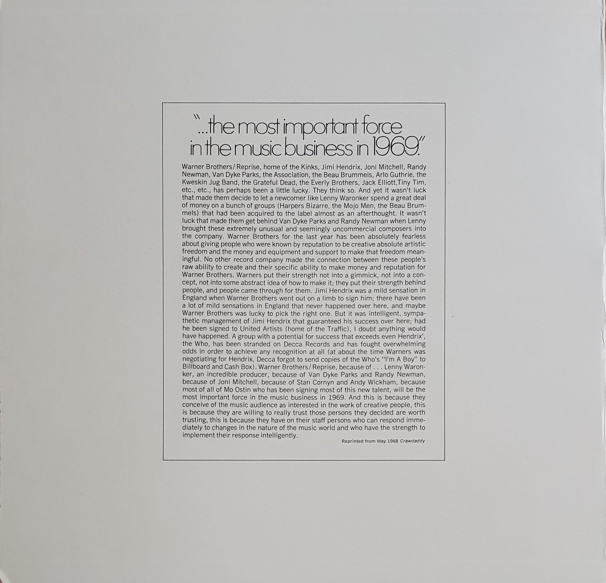 Gatefold Cover w.Inserts Attached. 1969 Warner Bros. - Seven Arts Records PRO 331. No ring wear, small corner bumps. Small writing inside of gatefold and on labels (original owners initials).