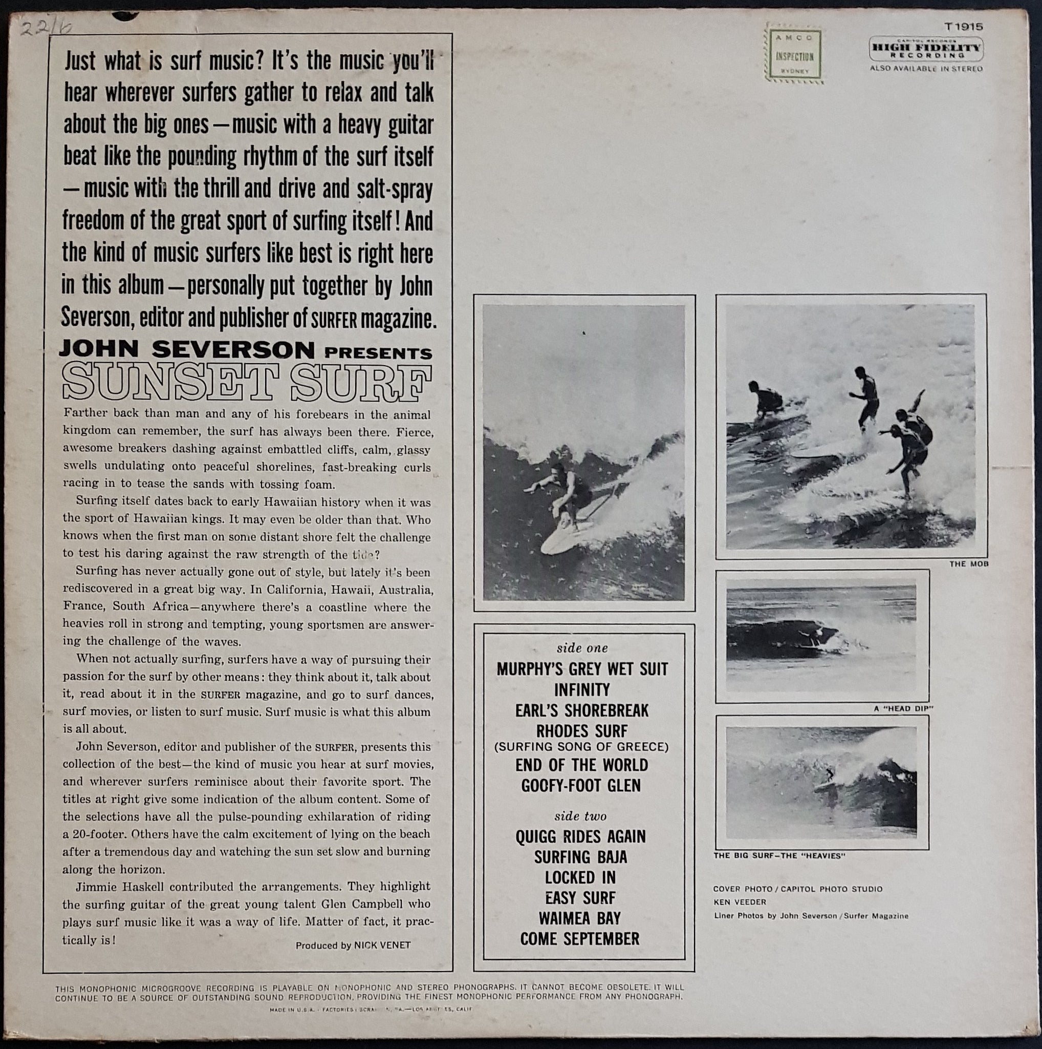 1963 Capitol Records T-1915. Cover has surface wear, minor foxing, small writing and 2 seam splits.