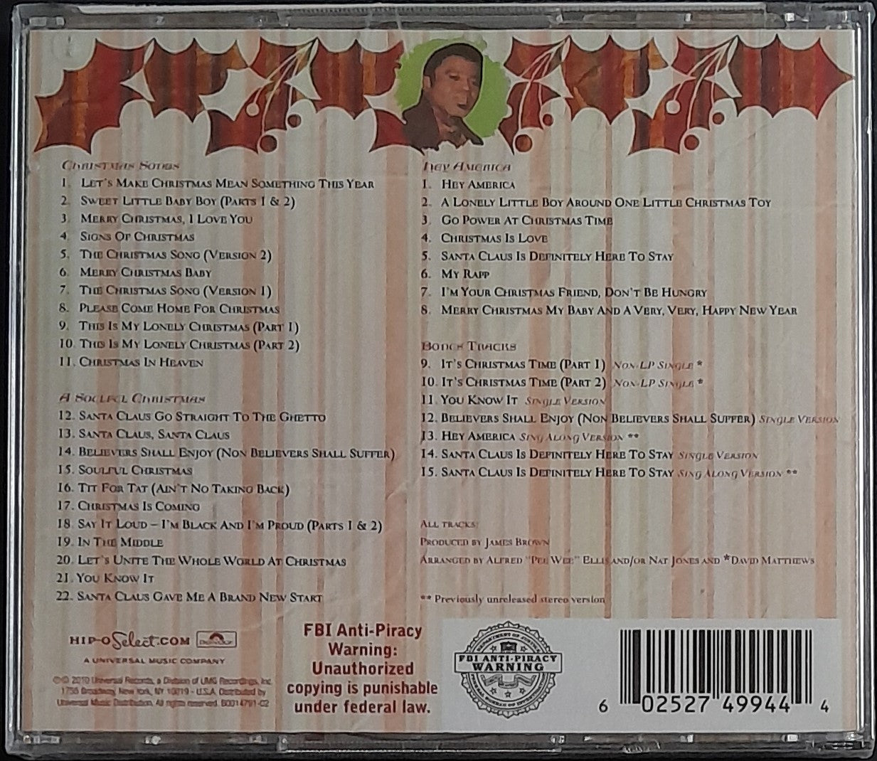 Compilation of 3 Christmas Albums + Bonus Tracks. 2010 Hip-O Select B0014791-02.