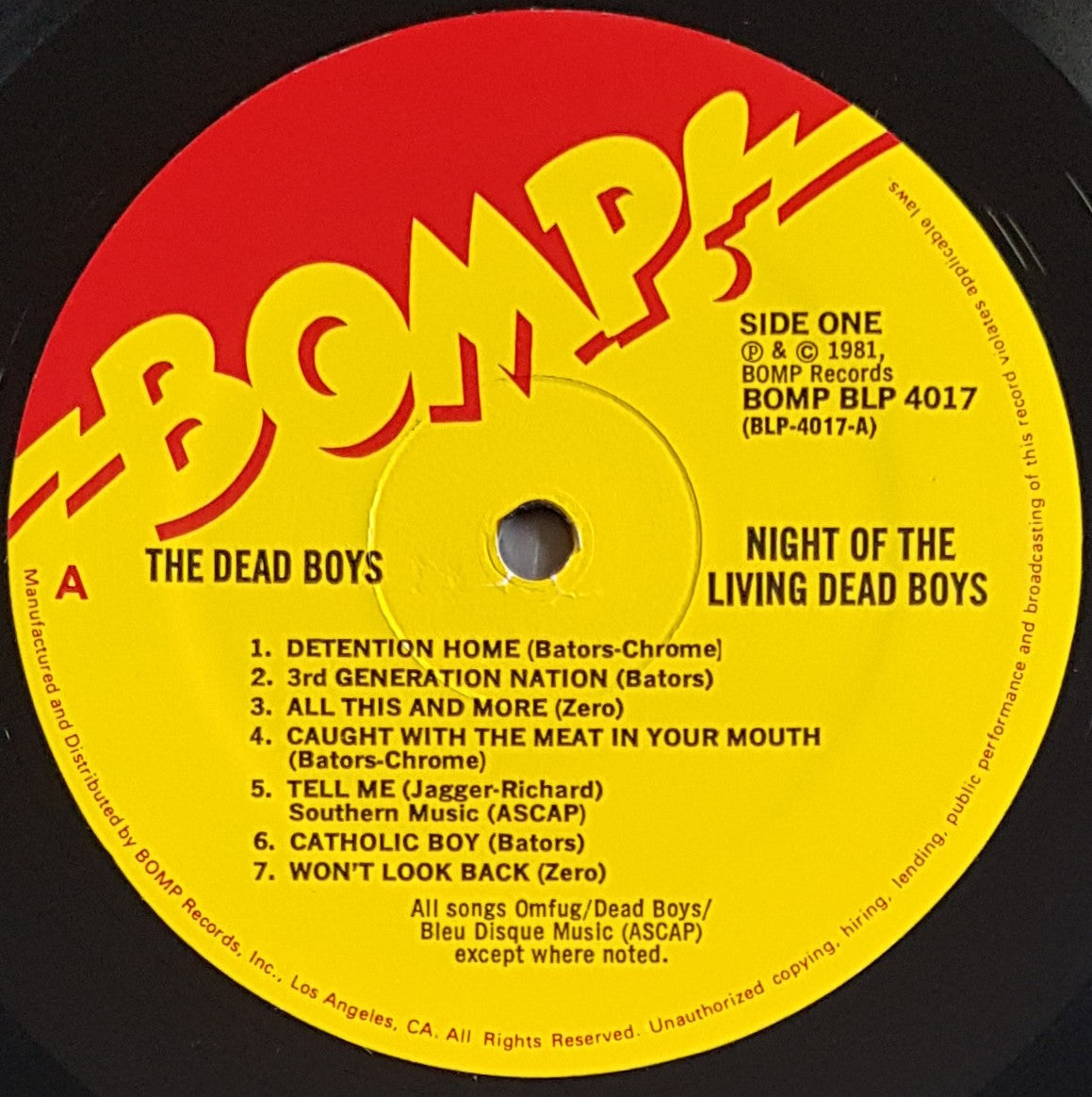 w.Insert. 1981 Bomp! BLP 4017. Edge wear and creases on cover.