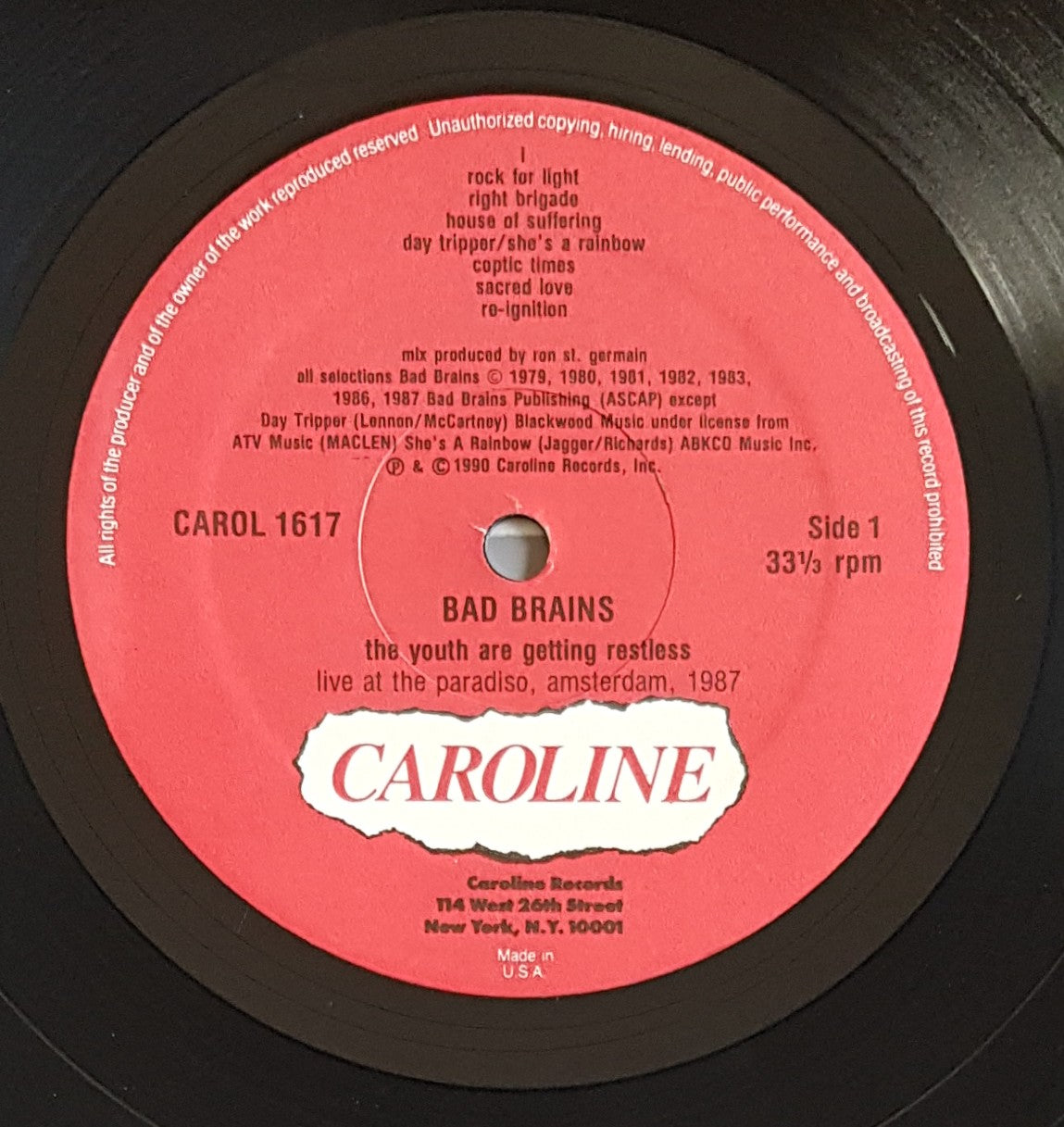 Live At The Paradiso, Amsterdam, 1987. w.Inner Sleeve (is split along one edge). 1990 Caroline Records CAROL 1617. Cover has small bumps along opening, 2 corner creases and is in original shrink wrap. Record is clean.