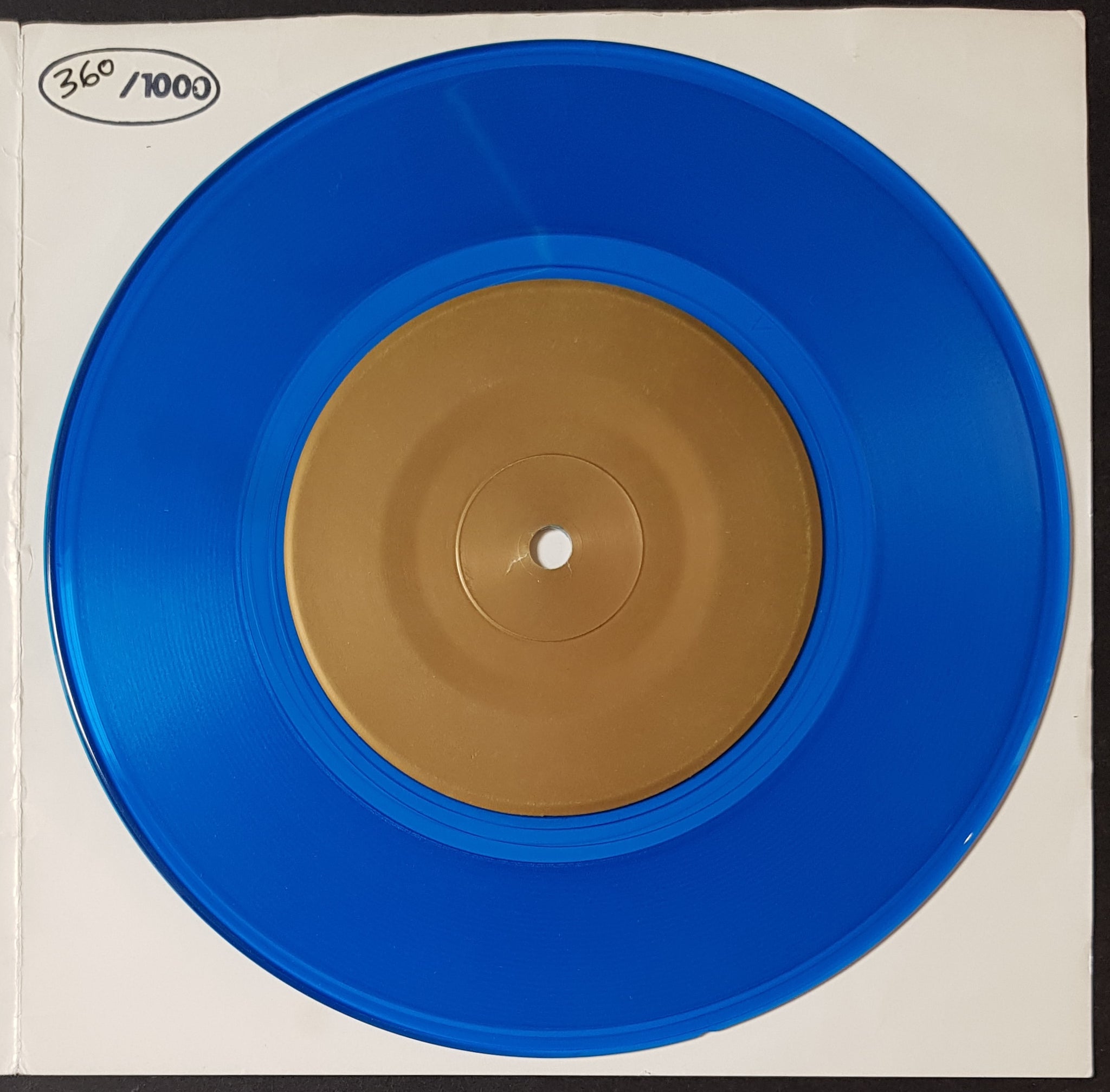 PS. Blue Vinyl. Live On Request Video - July 1992. 1000 copies hand numbered inside the folded picture sleeve. Sleeve is creased, worn and has 2 price tag stains