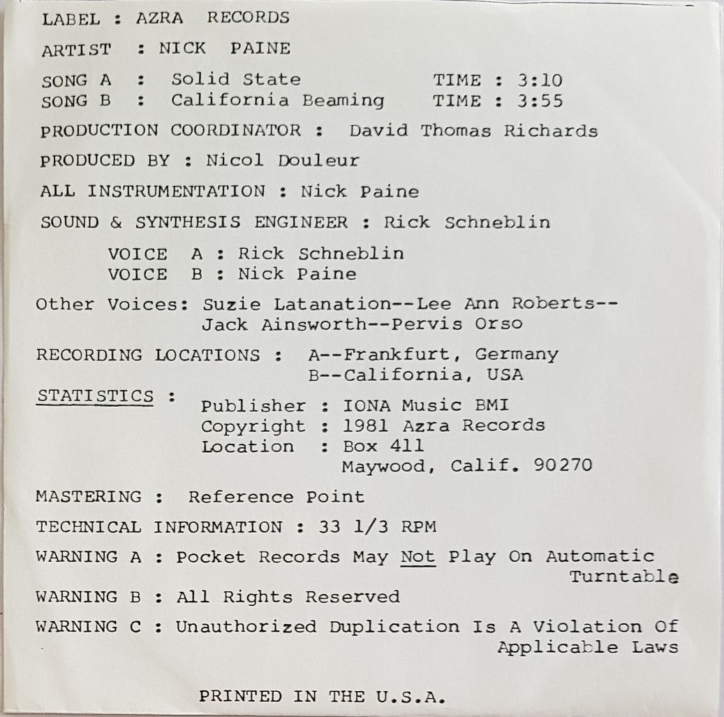 Red Vinyl Octagonal Shaped 33 1/3 w.PS. 1981 AZRA Records