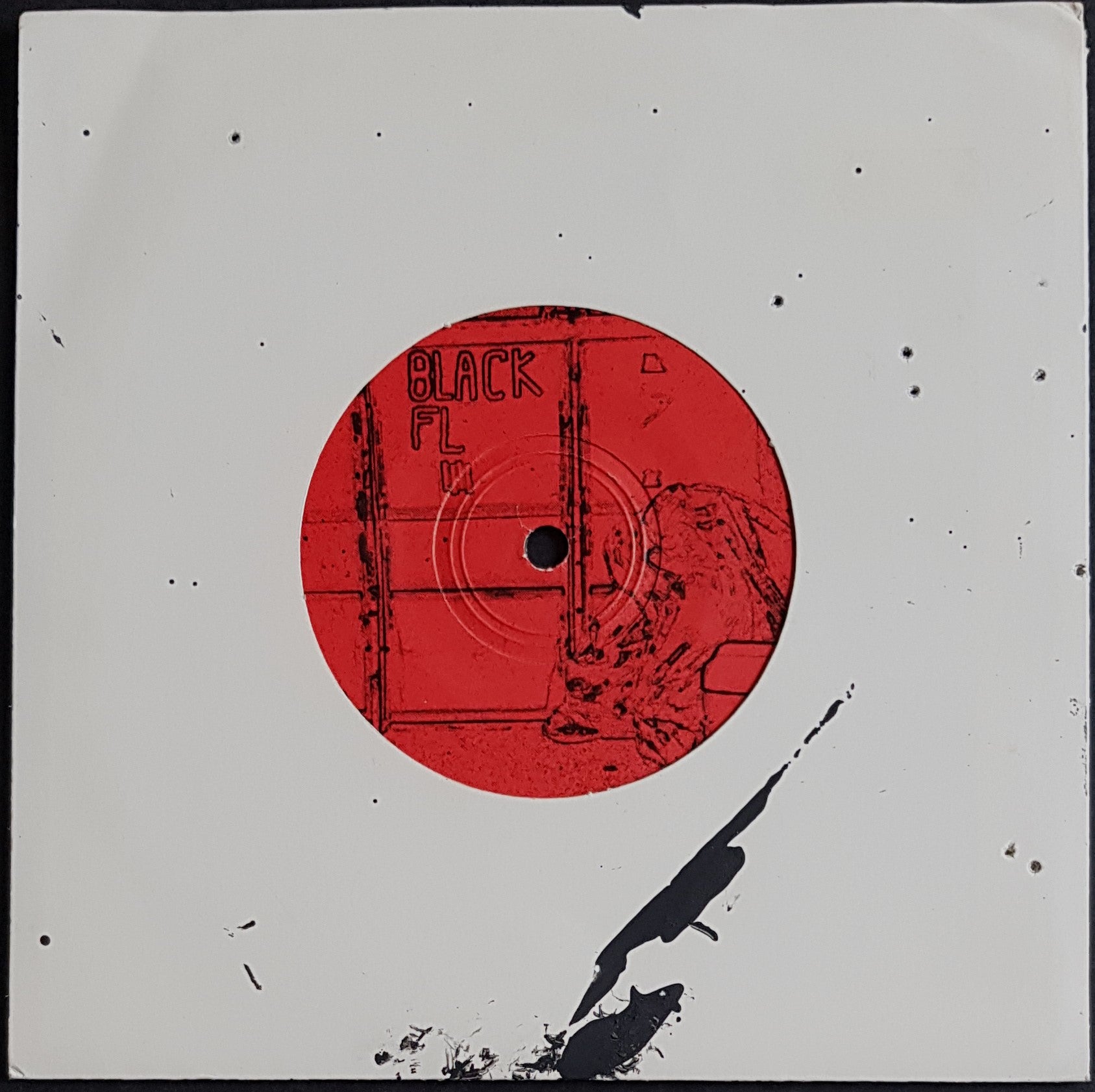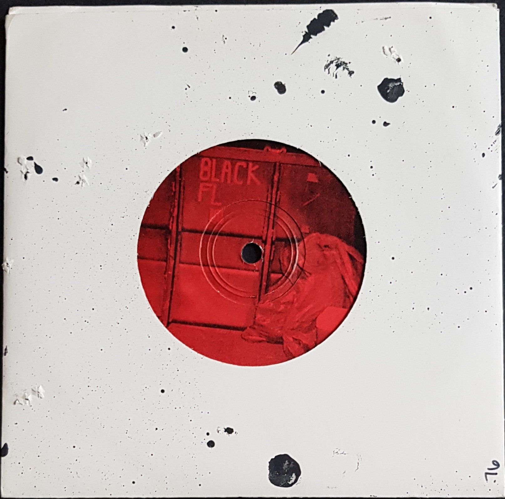 Split w.Harry Pussy. #.76 - Edition of 300. Tour single in "hand destroyed sleeves" (shotgun splatter). Black Flag tribute artwork on the labels. 1998 Klang Industries part #3 U-47487-m.