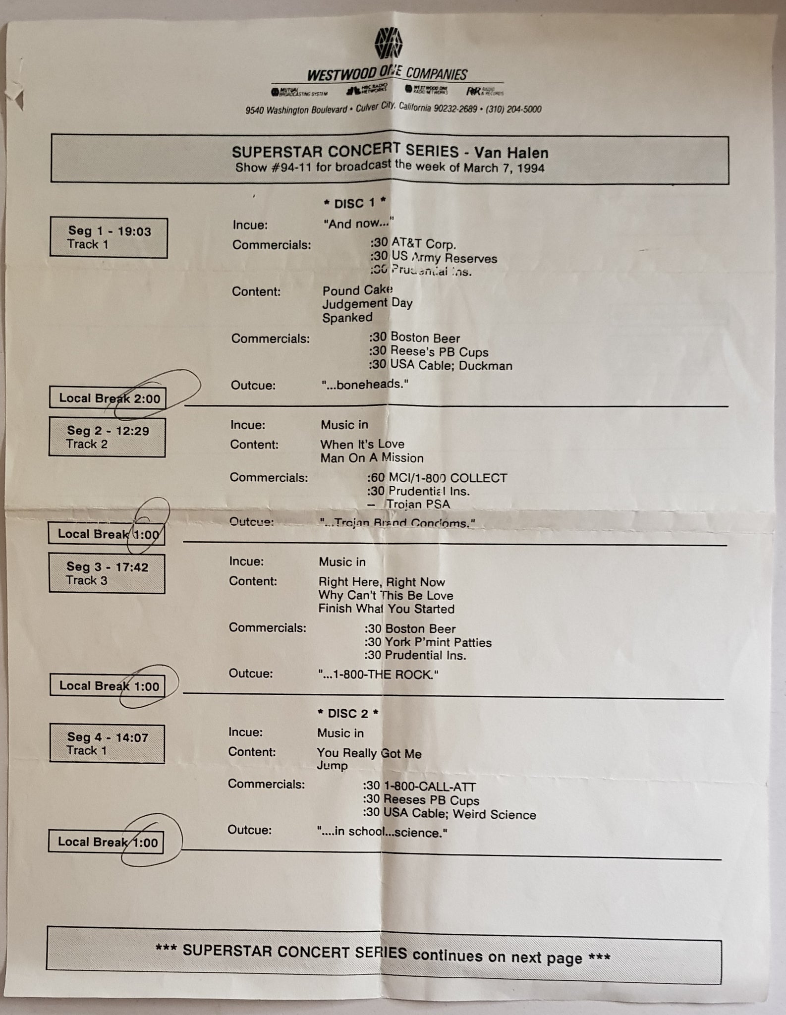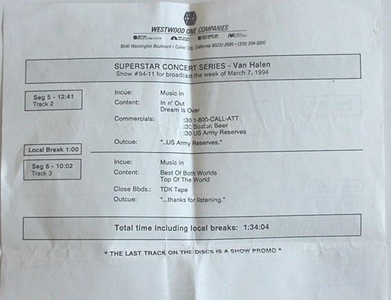 Live Westwood One Radio Show #94-11 with Cue Sheets