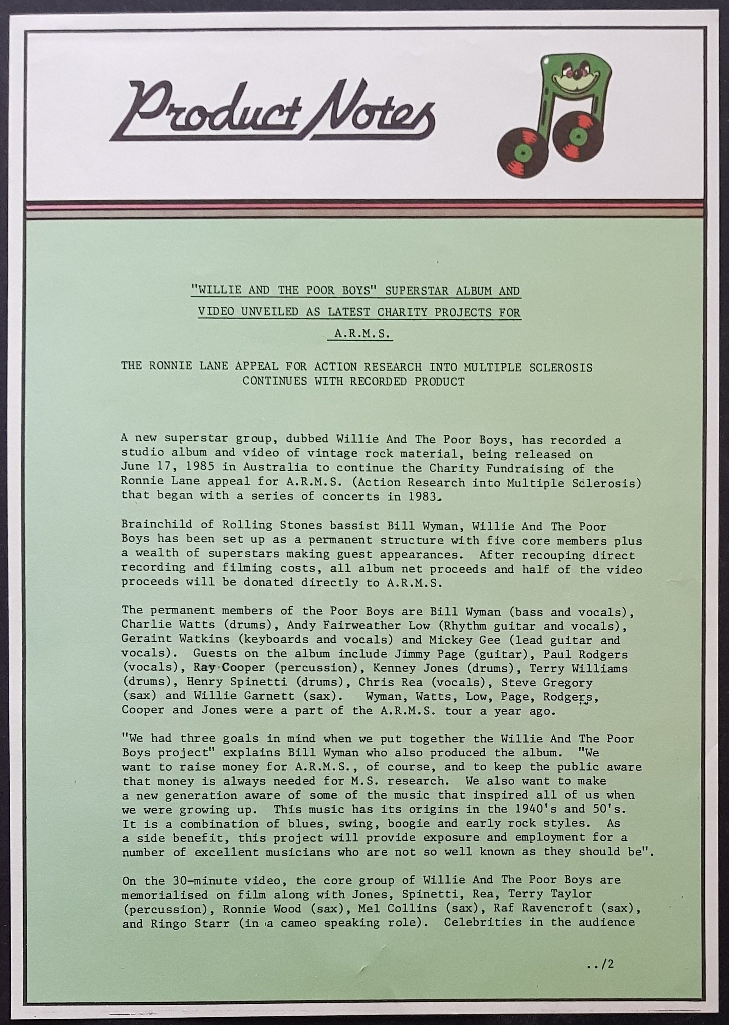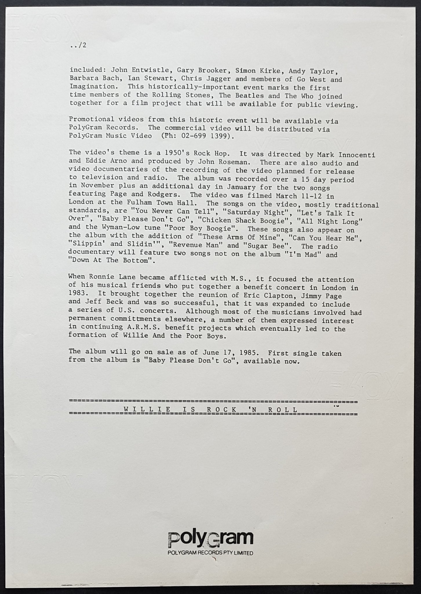 1985 PASSPORT Records PB 6047. Comes With Video Info./Order Insert. 2 Sided Aus. Promo Bio & 2 Page Local Radio Station Info Sheets re.Publicity. Cover Has Minor Creasing & Spine Split