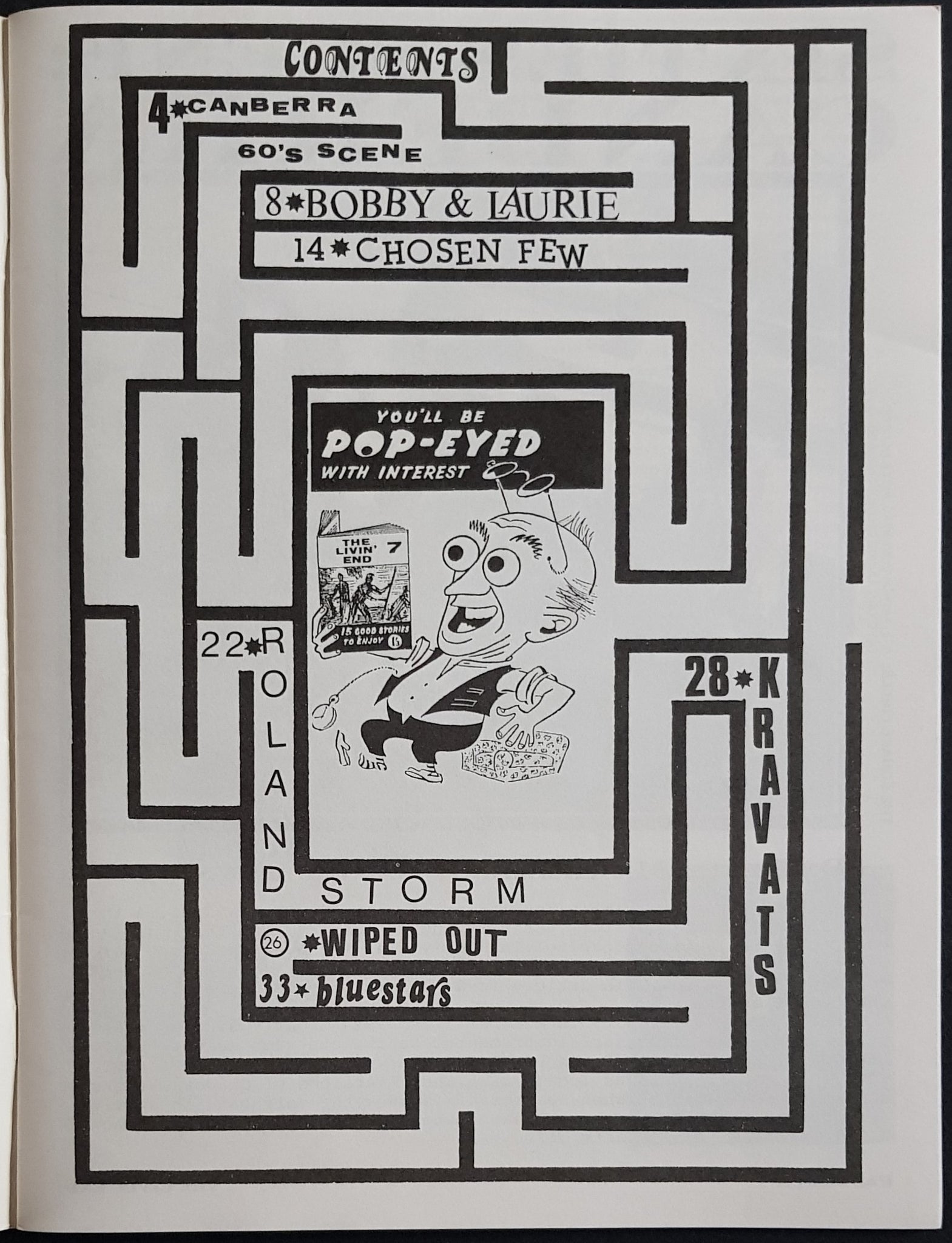 Original Print. 40p. Features Articles on Bobby & Laurie, The Bluestars, Roland Storm, The Chosen Few, Kravats, Canberra 60's Scene++
