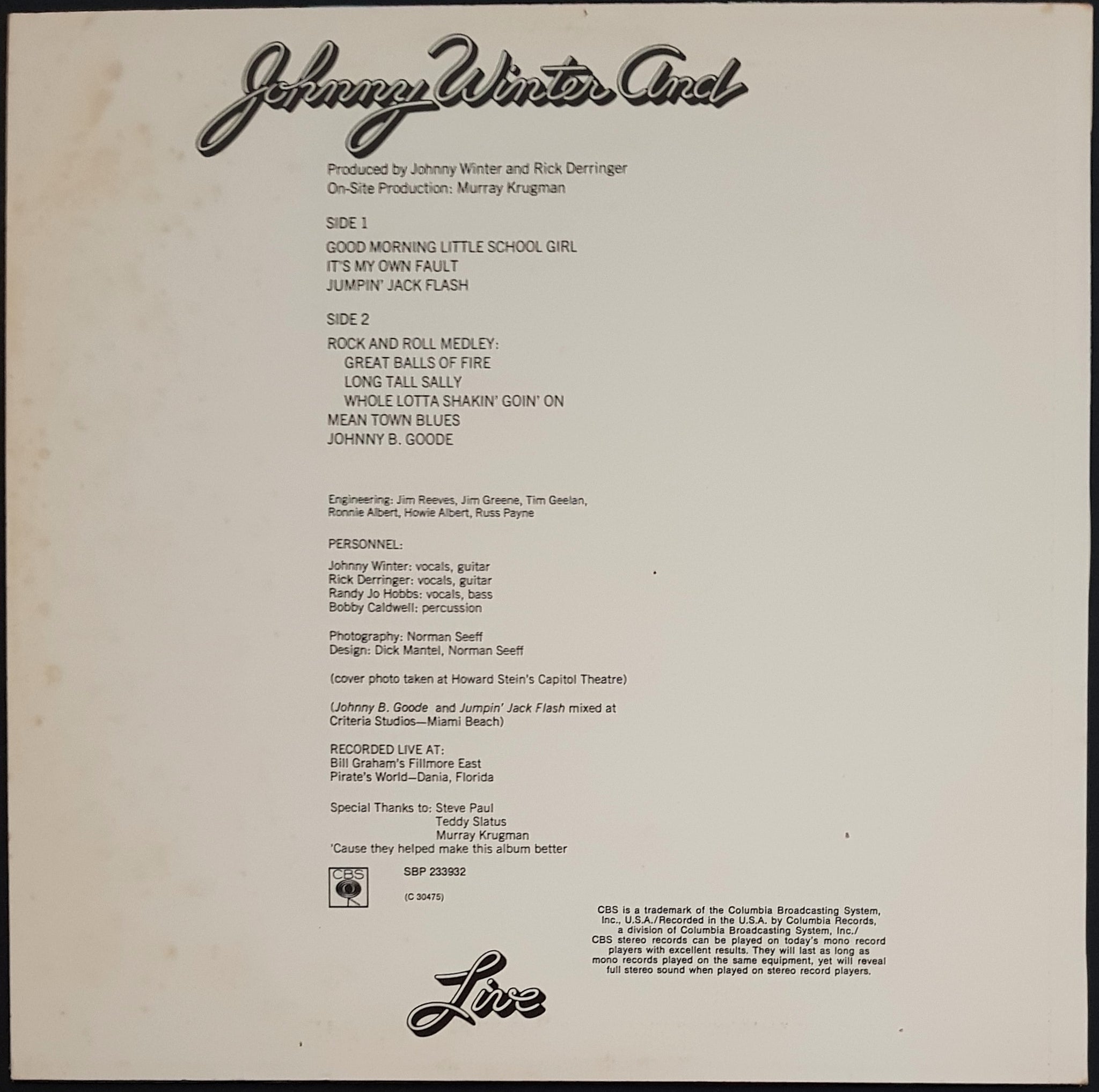 Winter, Johnny - Johnny Winter And Live