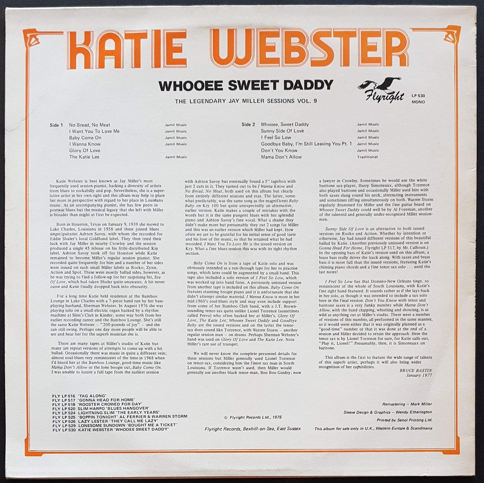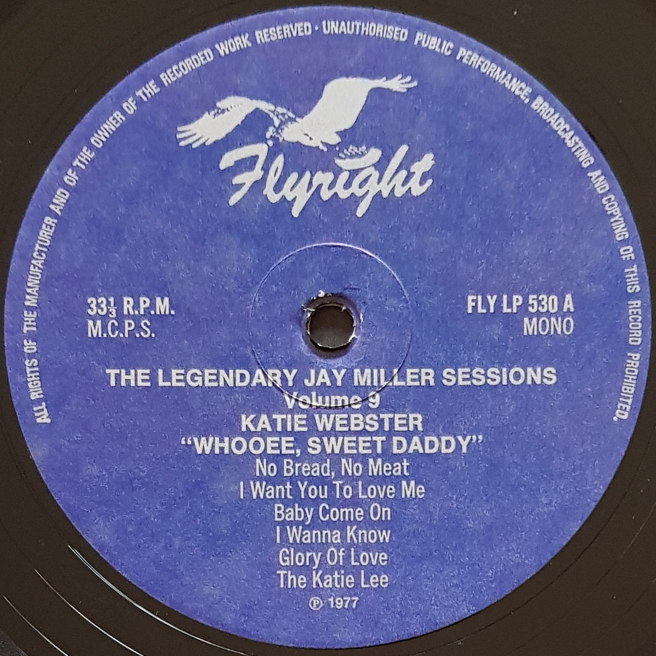 The Legendary Jay Miller Sessions Vol.9. 1977 FLYRIGHT FLY LP 530. Signed on Front Cover by Katie. Minor Wear On Cover. Light Hairlines on Disc...Very Clean