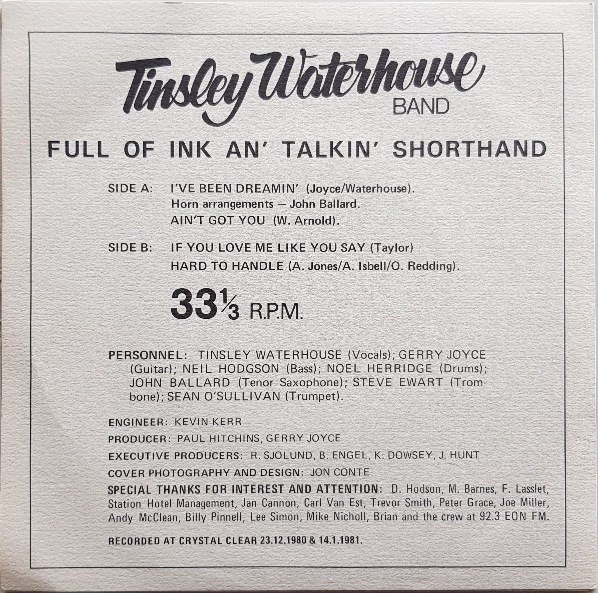 Tinsley Waterhouse Band - Full Of Ink And Talkin' Shorthand