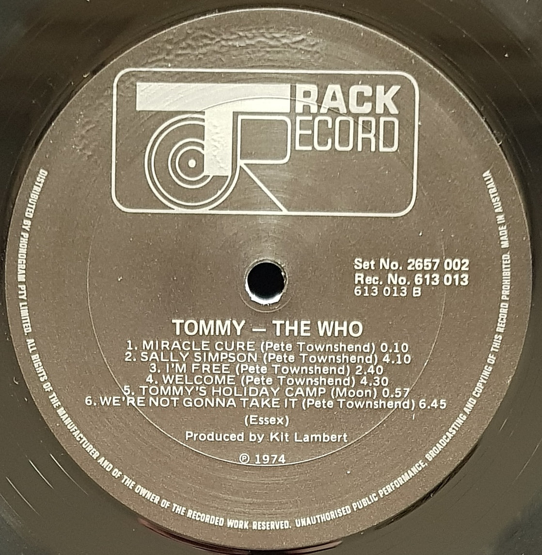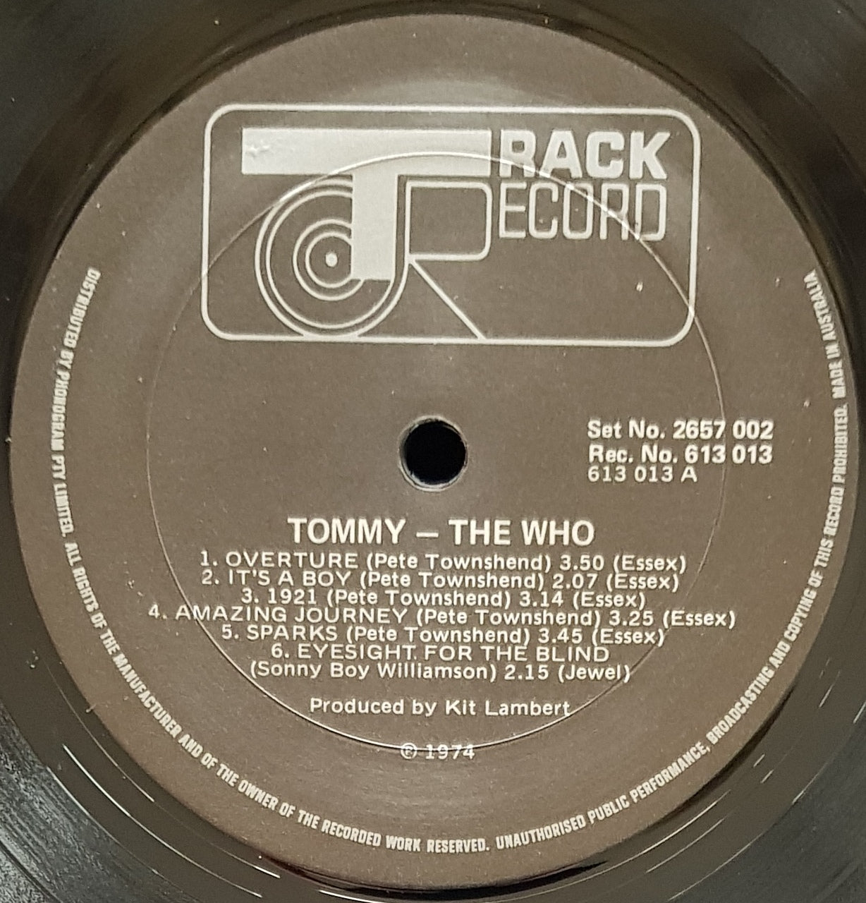 1974 TRACK 2657002. Fold Open Cover w.Insert. No MX matrix number on labels
