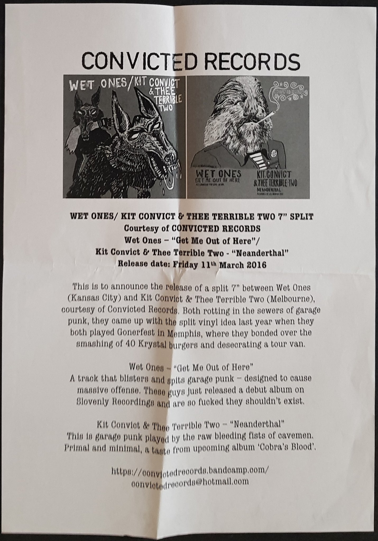 PS. Split Release w. Kit Convict & Thee Terrible Two. 2016 Convicted Records CVR003. Minor Creases on Cover. Sold with promo info sheet