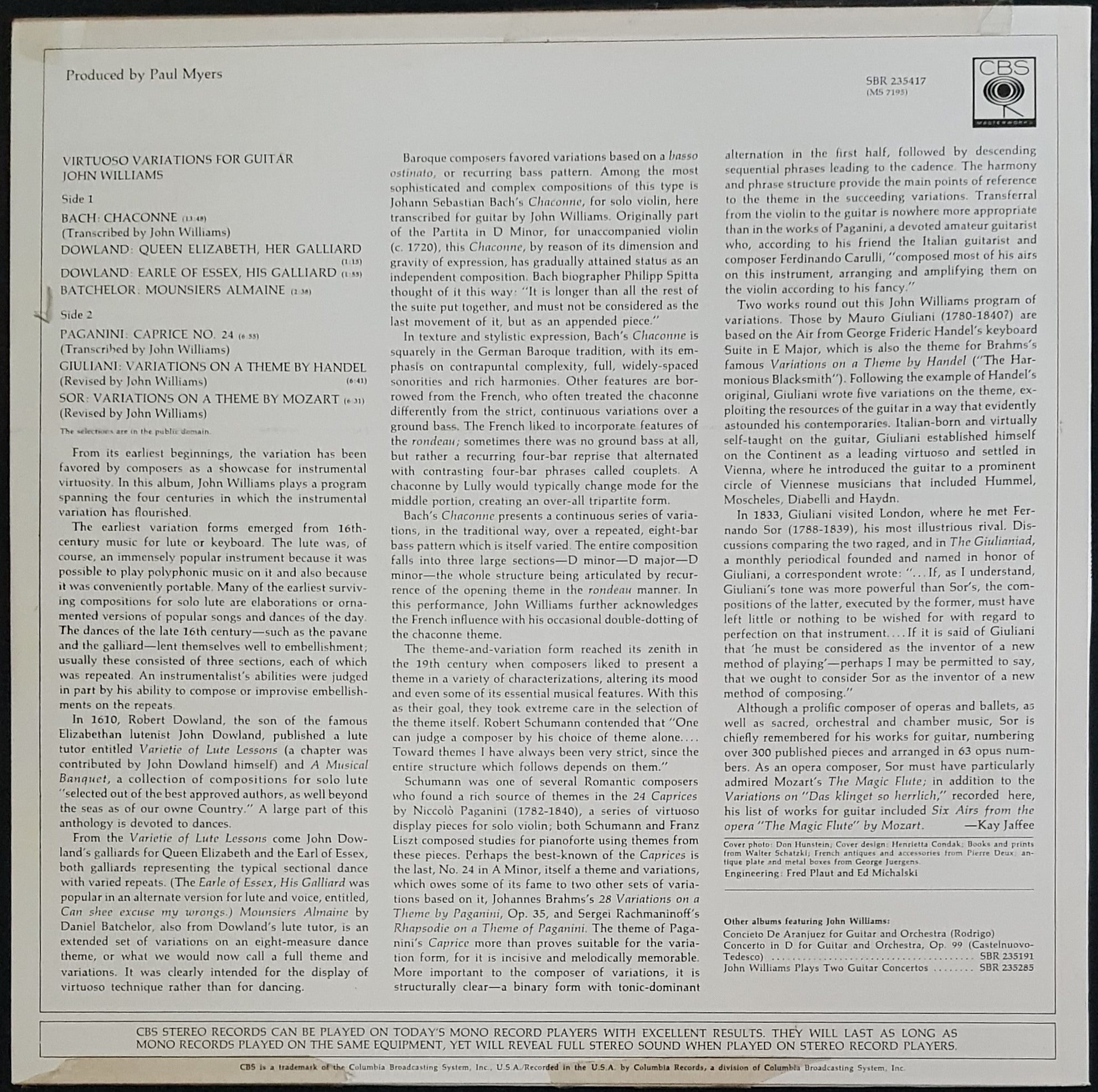1980's CBS SBR 235417. Cover has clear tape along top and bottom seam. Small writing on rear.