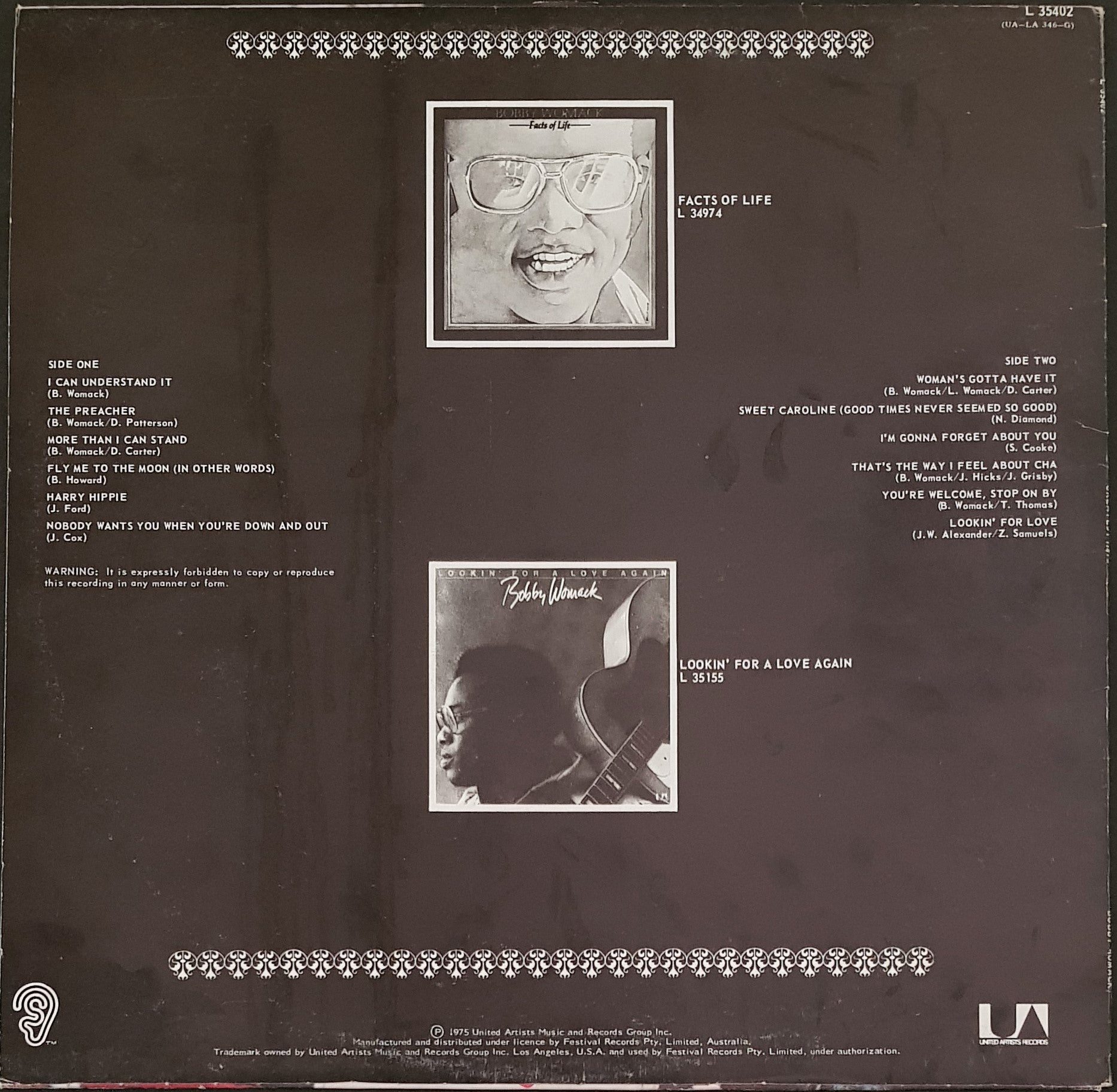 1974 United Artists L-35402. Cover has minor ring wear, heavy creases along spine & small seam split