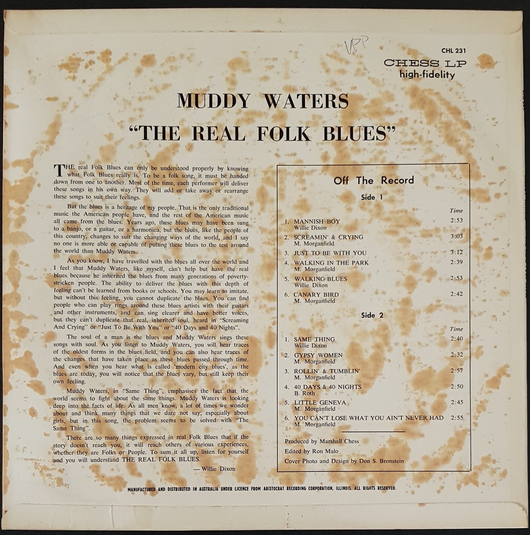 1966 Chess CHL 231. Front cover is laminated and brilliant, glossy with relatively sharp corners, minor scuffs and light creases. Has come from Radio Station Record Library and was stored in a Tar lined jacket which has stained the back cover as the board