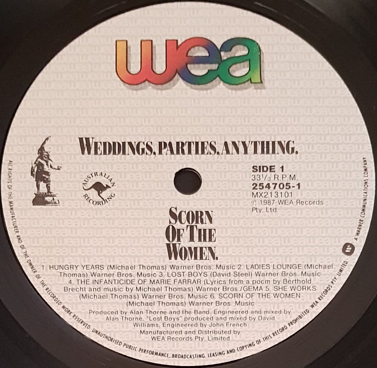 w.Inner. 1987 WEA 245705-1. Minor Ring, Surface & Edge Wear on Cover. Foxing on Labels