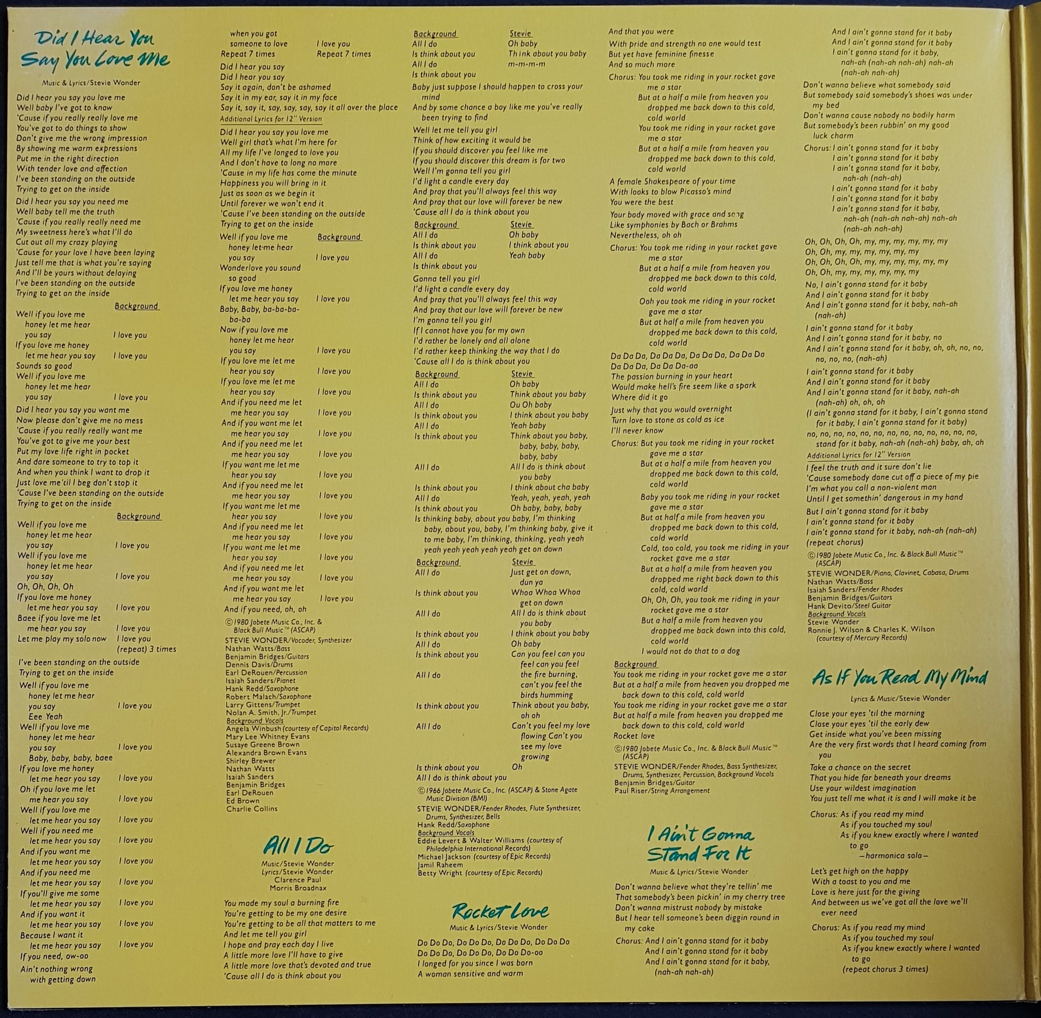 Gatefold Cover w.Inner Sleeve. 1980 Motown T8 373. Creases on cover. Light scuffs / hairlines on disc. Small mark on "Did I Hear You Say You Love Me" will tick for a handful of revs.