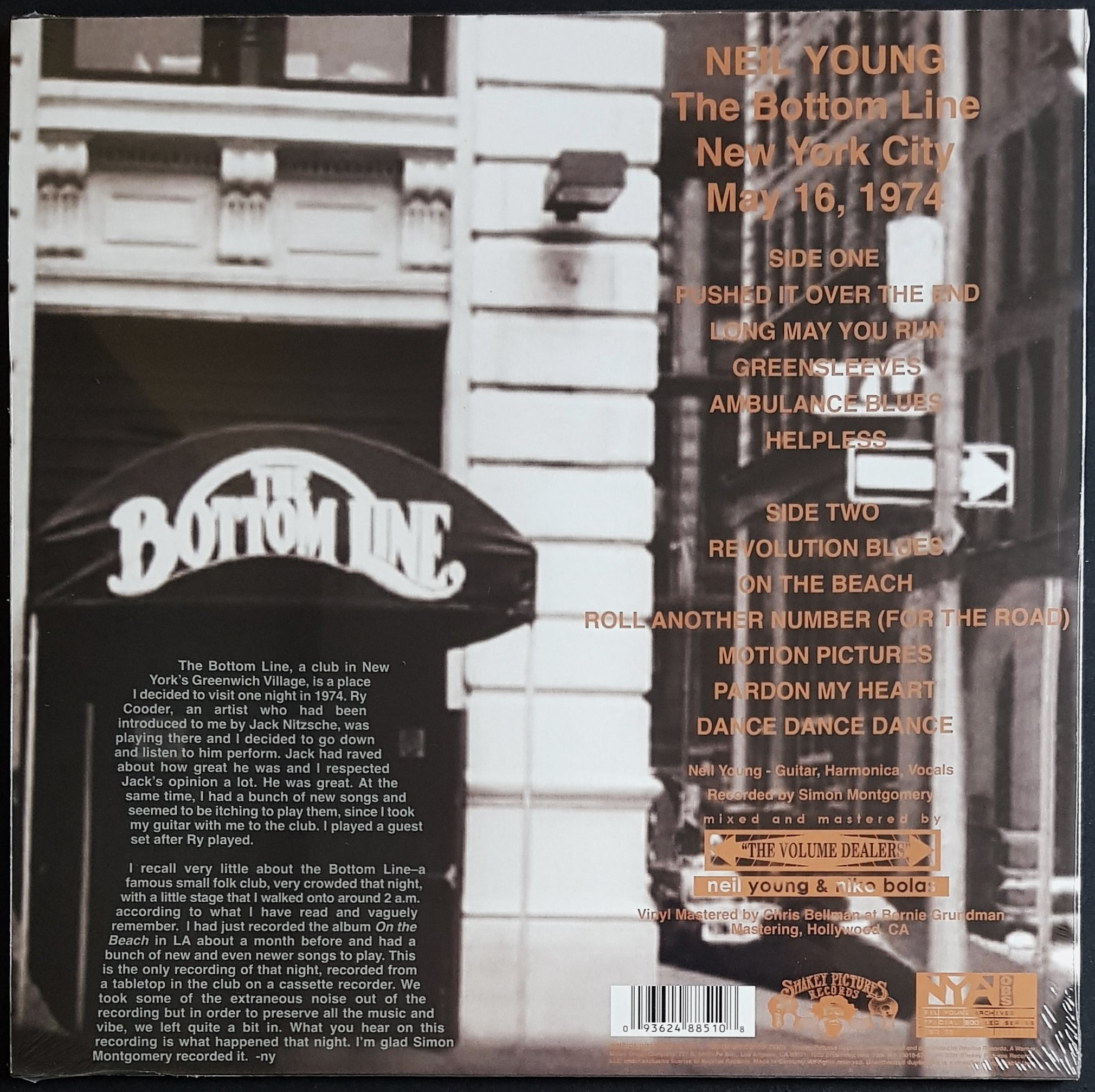 2022 Shakey Pictures Records 093624885108. Recorded Live @ The Bottom Line, New York City, May 16, 1974