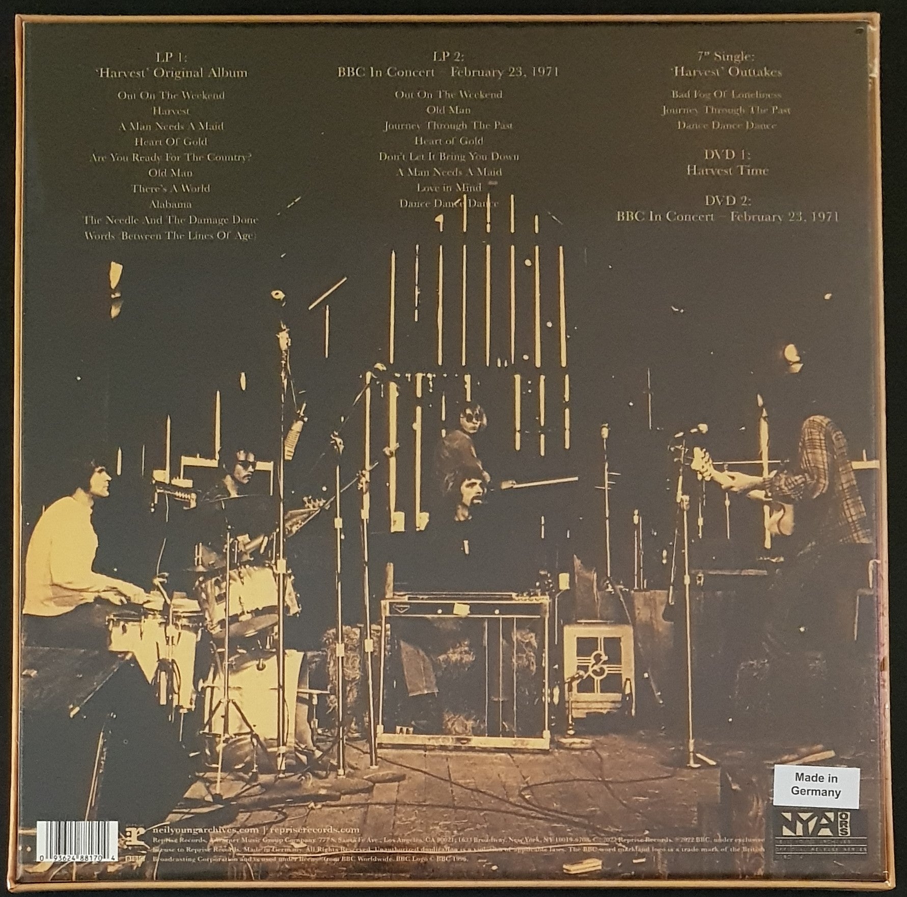2LPs +Harvest Remastered & BBC In Concert - February 23, 1971. 2 x DVDs BBC 1971 + Harvest Time Film + 1 x7" Outtakes. 48-page hardbound book, a fold-out band poster, and a numbered lithograph. 2022 Reprise 093624881704. Sealed Copy. Hype Sticker on Shrink has Minor Scuffs and Wear. Not sure how it came sealed in a shipping outer.