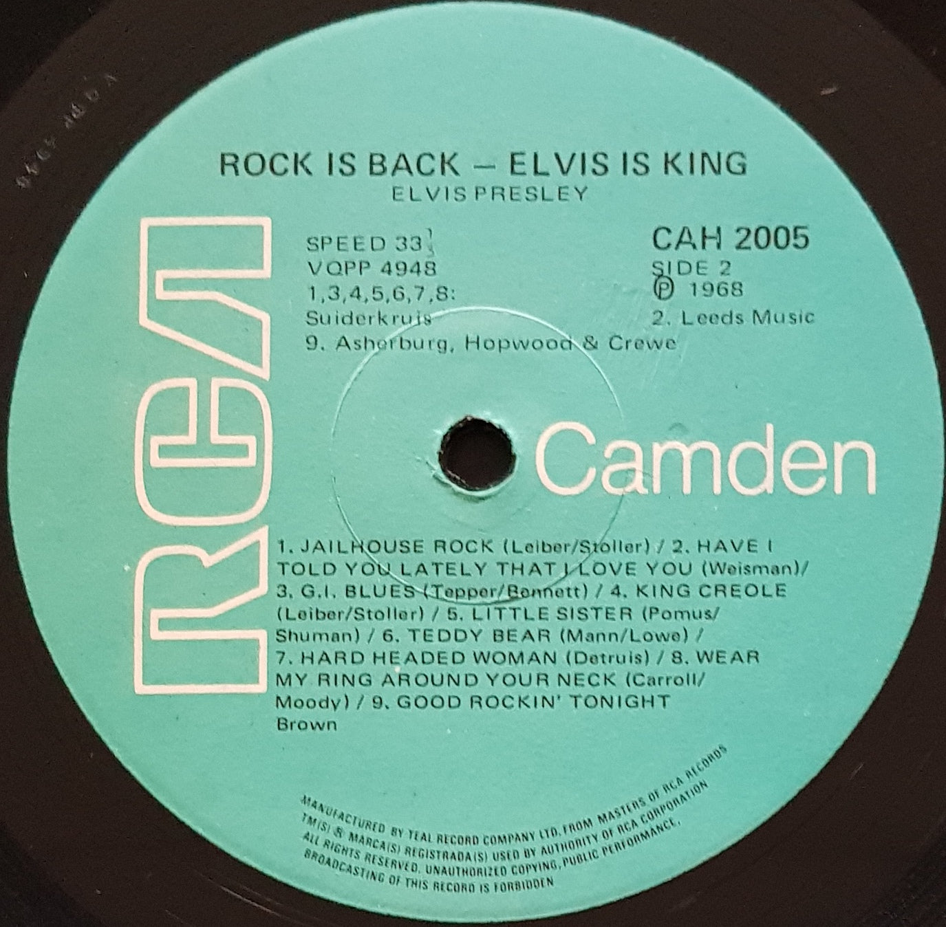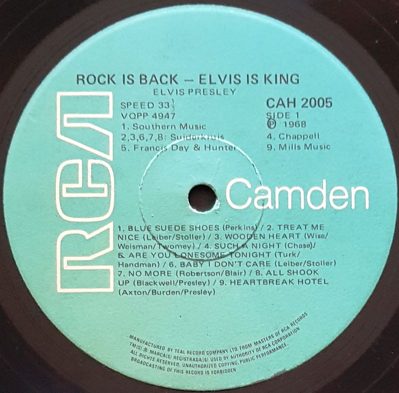 Blue RCA Camden label. CAH2005. Small writing on back cover
