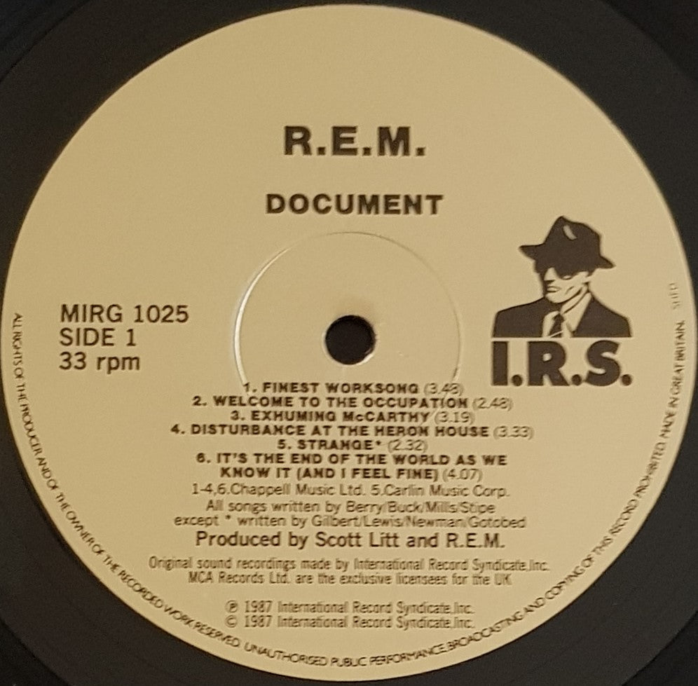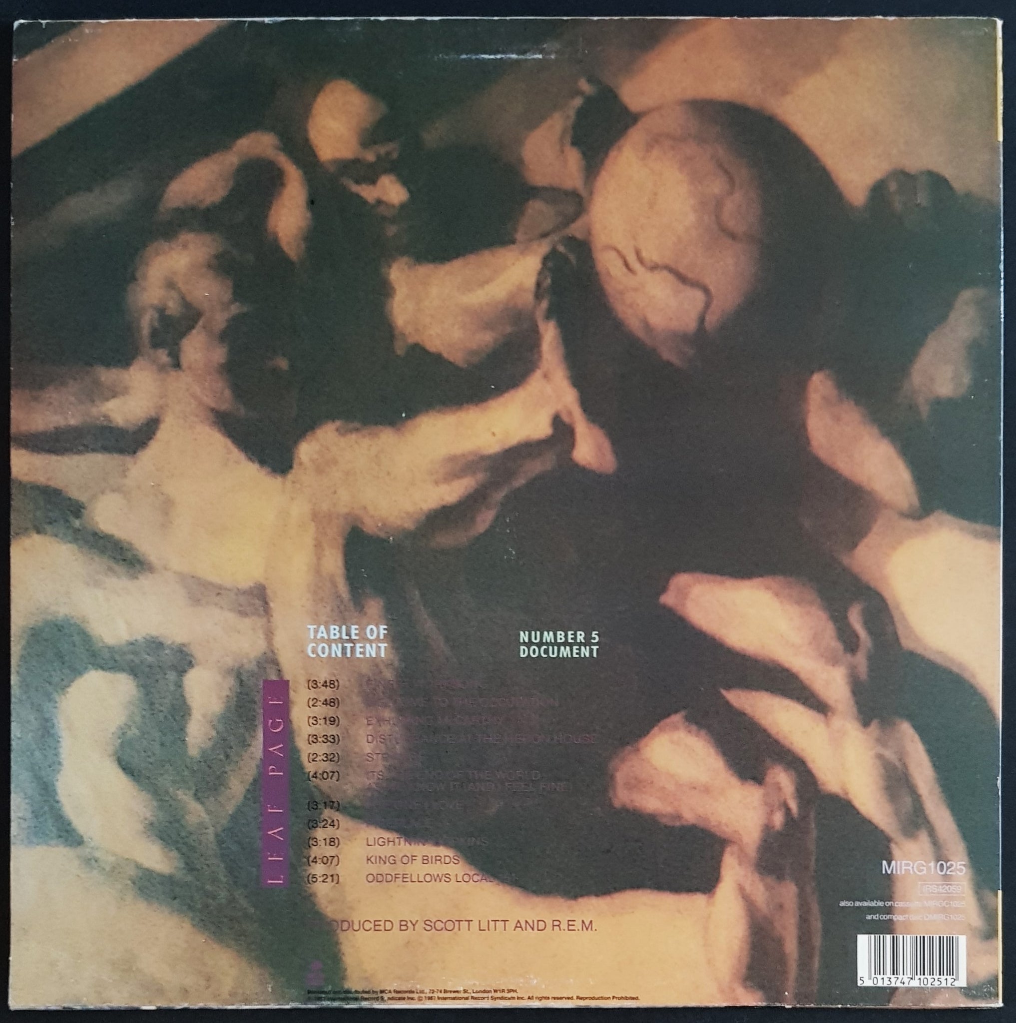 w.Inner Sleeve. 1987 I.R.S. Records MIRG 102. Minor wear on cover along top seam. Original Price tag Remnant on Front