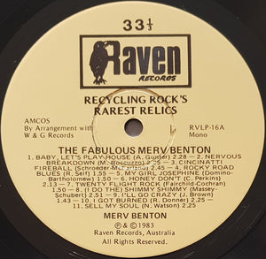 RAVEN RVLP-16. Signed on Front in Black Marker Pen 'Hi Alan Take Care' 'Merv Benton'