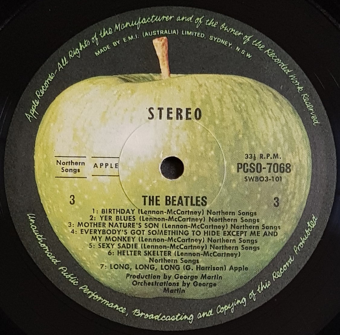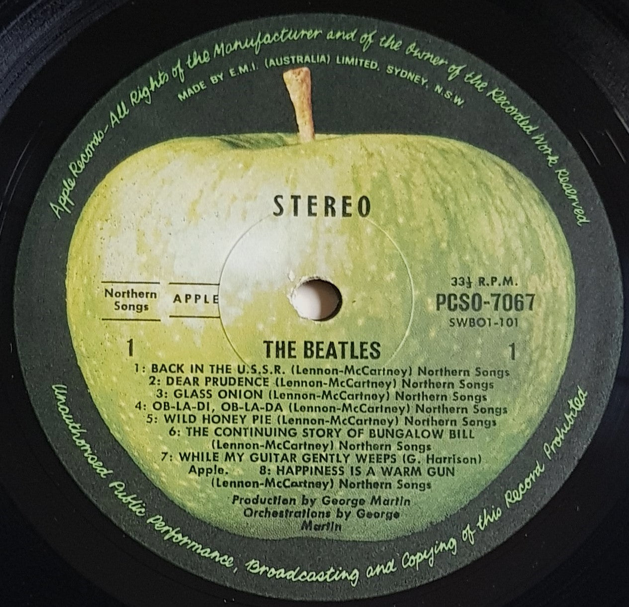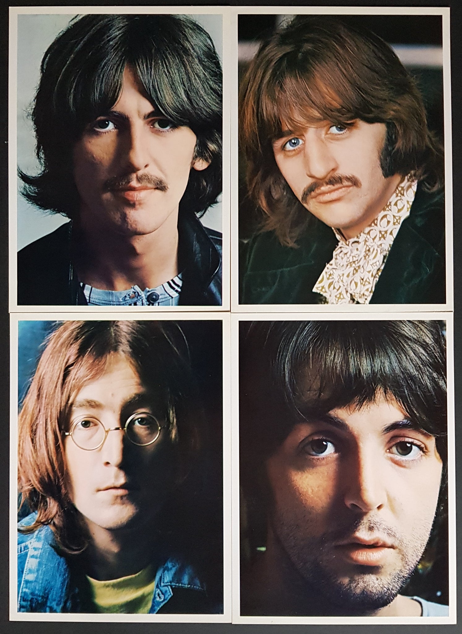 Complete with black inner sleeves, poster & 4 picture cards. 1968 Apple PCSO-7067-8. Northern Songs / Apple Publishing On Labels. No. A 14751. Laminated cover has minor wear / scuffing. It has slightly browned around the edges.