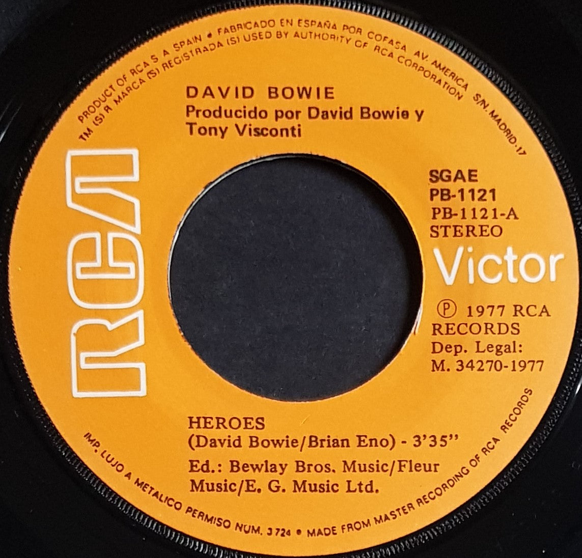 PS. 1977 RCA Victor PB-1121. 2 Small Hairlines on Heroes, Plays with 2 or 3 small ticks. One Obvious mark on V-2 Schneider is non sounding