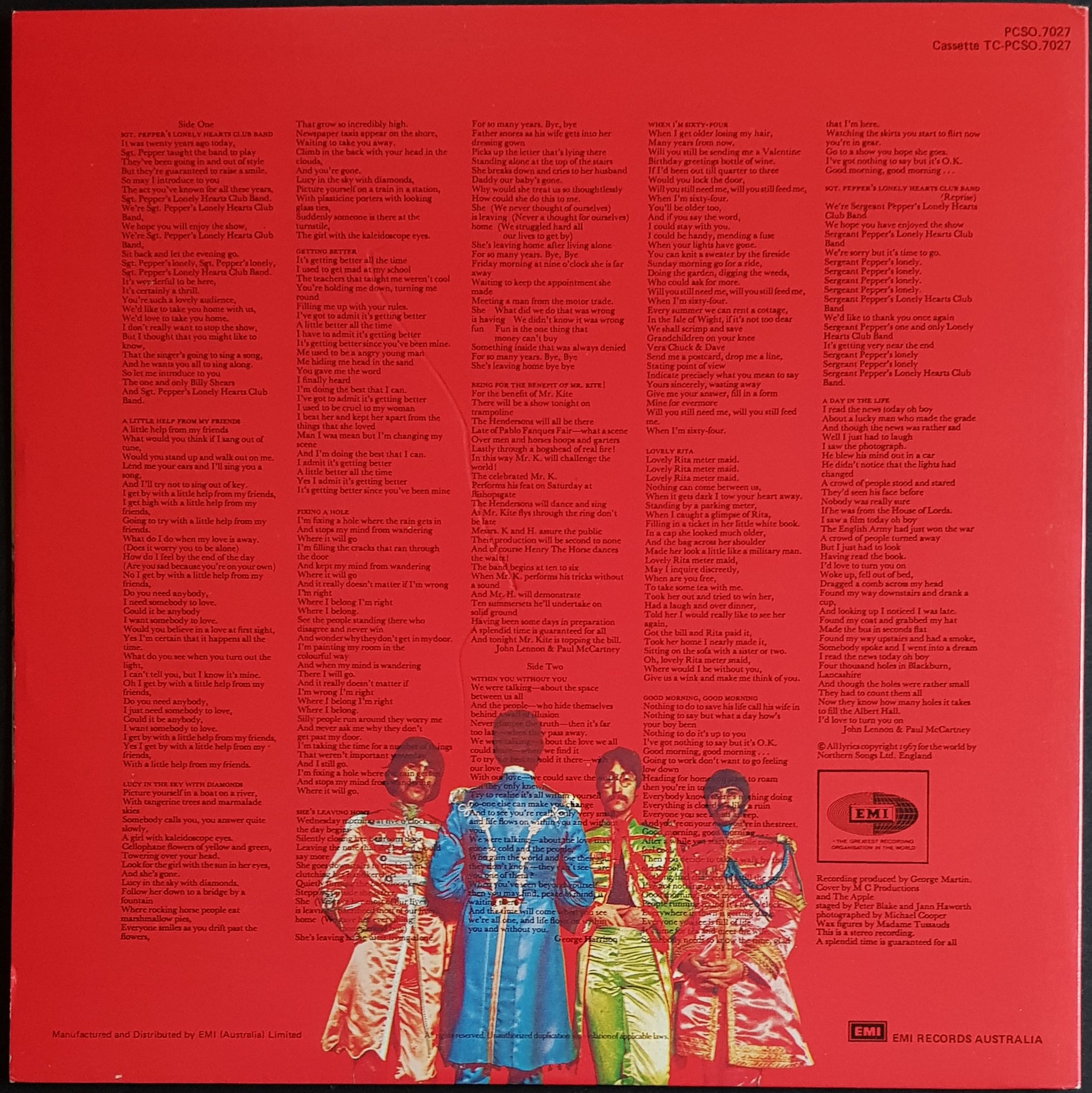 w.Gatefold Cover & Insert. 1987Parlophone PCSO 7027. Minor Scuffs and Small Mark At Opening on Front Cover. Back cover has deep scrape mark, it does not break the print.