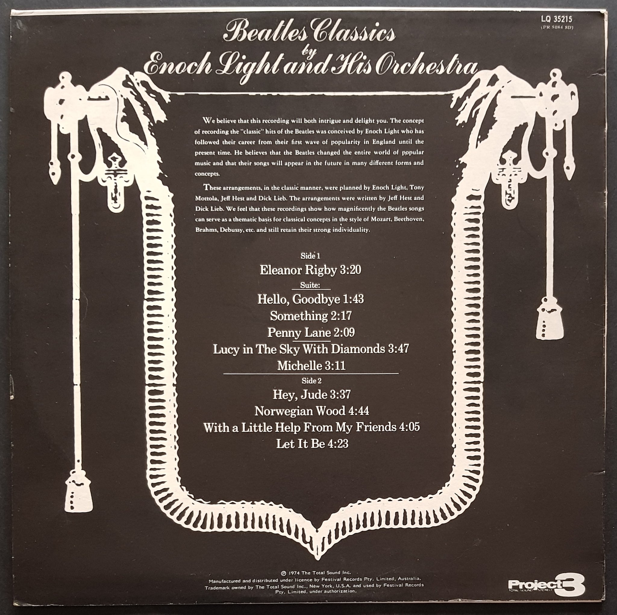 Orchestral Cover Versions. 1973 PROJECT 3 Label LQ 35215. Quad. Pressing.