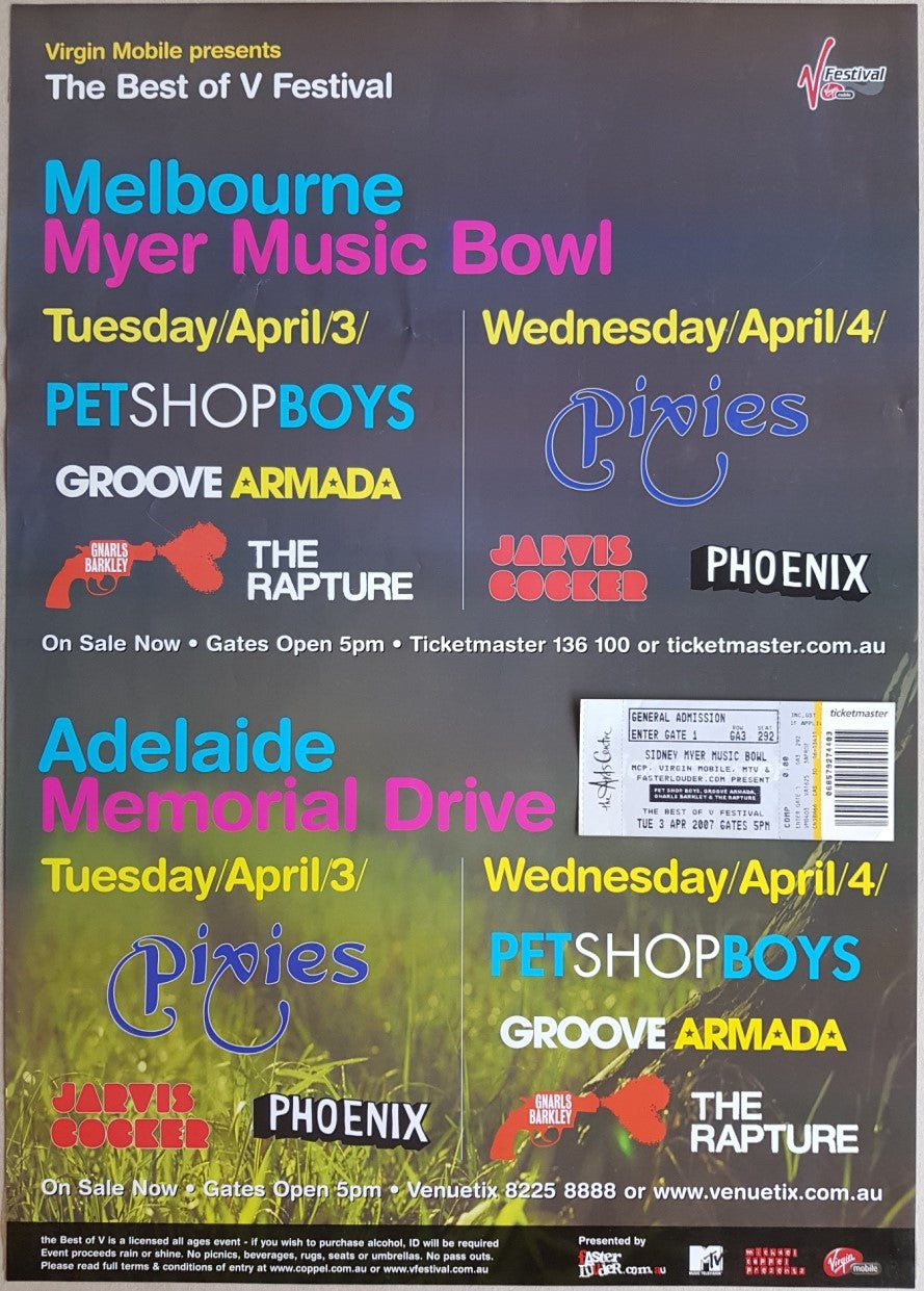 for Melbourne & Adelaide Shows. 42cm x 59cm.  Sold with ticket to Myer Music Bowl Show.