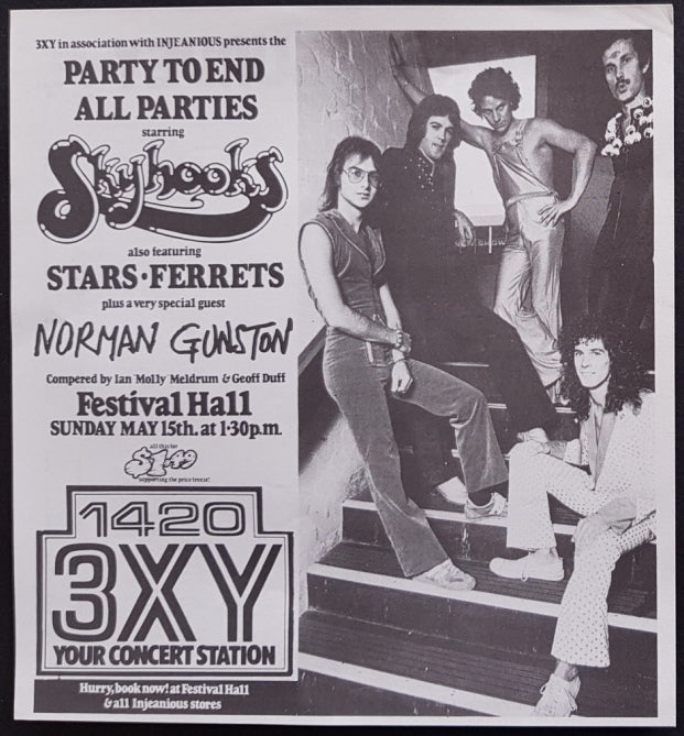 Top 40 Chart 7" x 7" in size w.Skyhooks Band Picture on front and 'Party To End All Parties' Gig Ad. May 13, 1977.