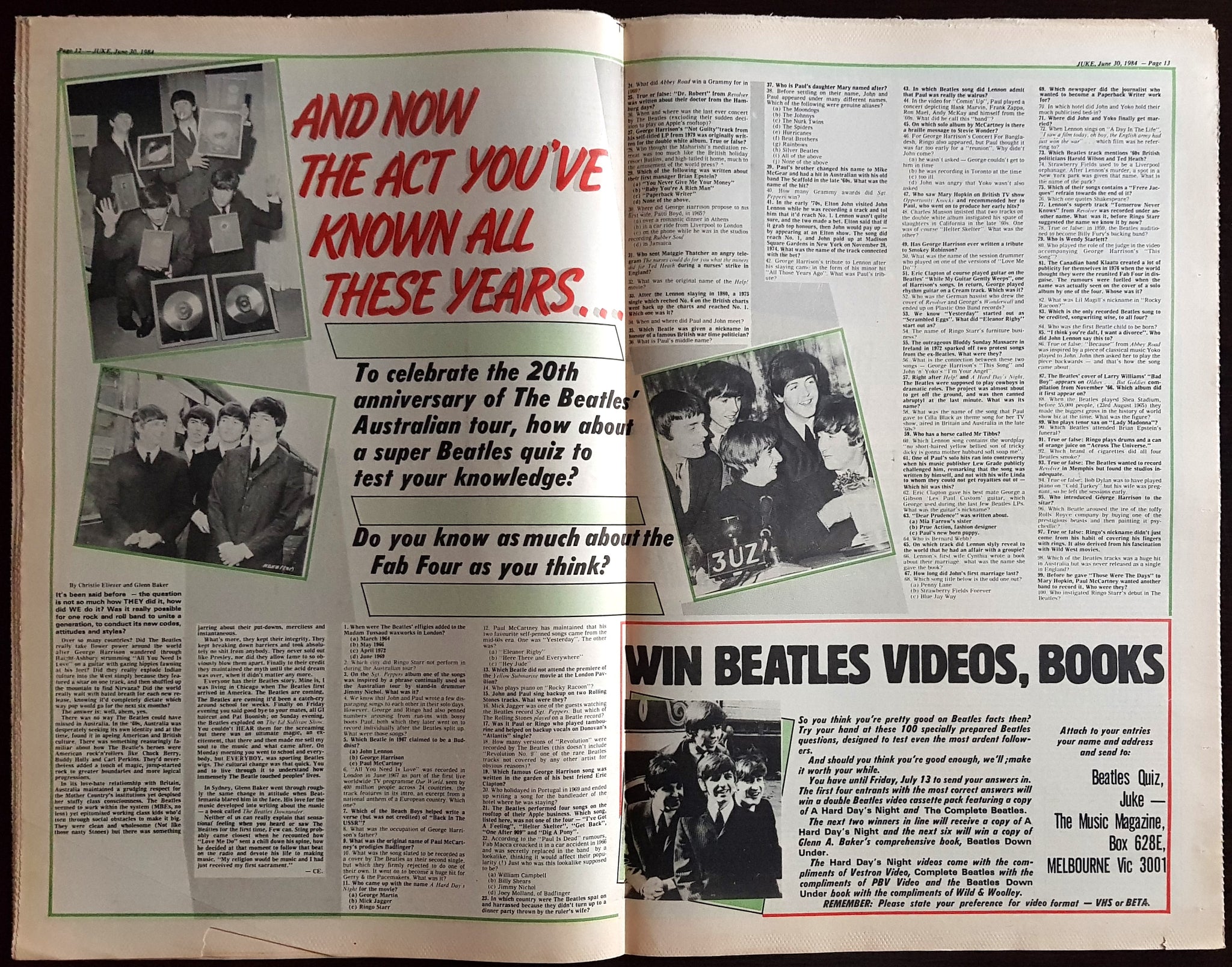 w. Beatles Cover & Article. Issue Also Features, Reviews And Or Has Ads For Madonna, Huxton Creepers, The Hitmen, Models, Uncanny X-Men + Others.