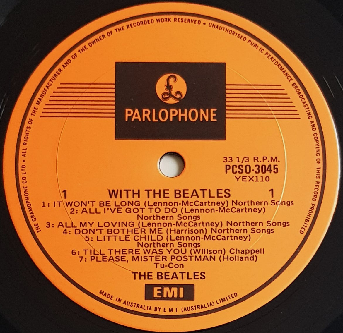 1981 Parlophone PCSO 3045. Handling creases along spine, crease and small tear at opening end of cover.