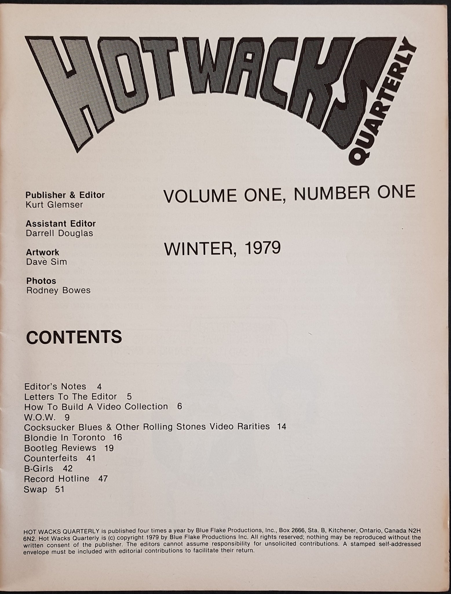 w.Wendy Cover & Article. Features on Blondie, Rolling Stones, B-Girls and Bootleg Reviews. Cover has frayed along spine, otherwise EX.