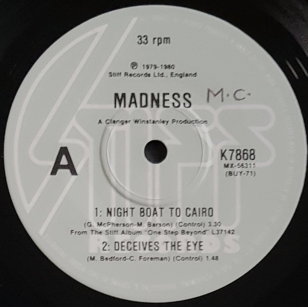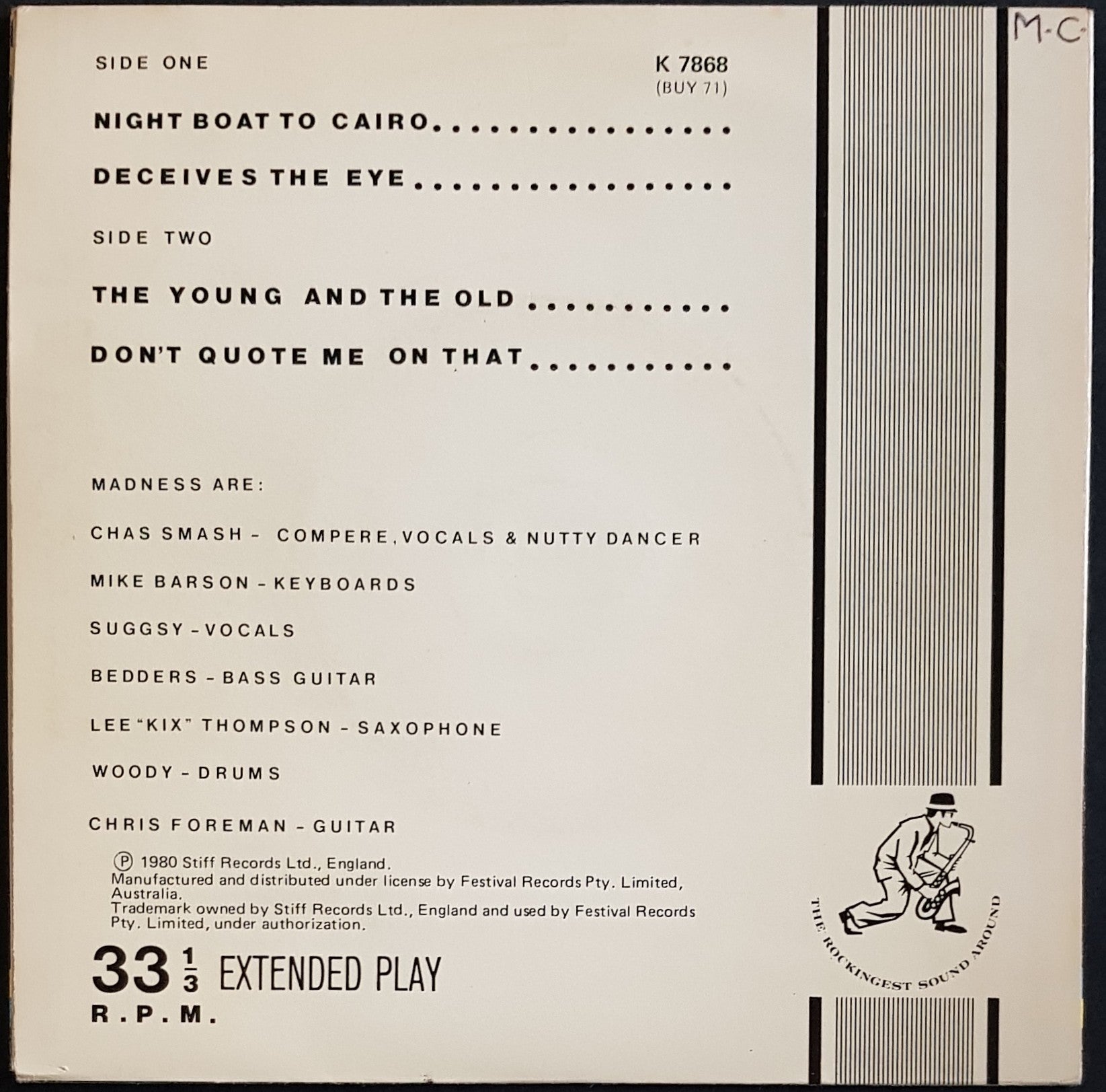 EP PS. 1980 Stiff Records K7868. Minor creases at opening of sleeve, which has light ring impression from disc. Small writing on back cover & on label.