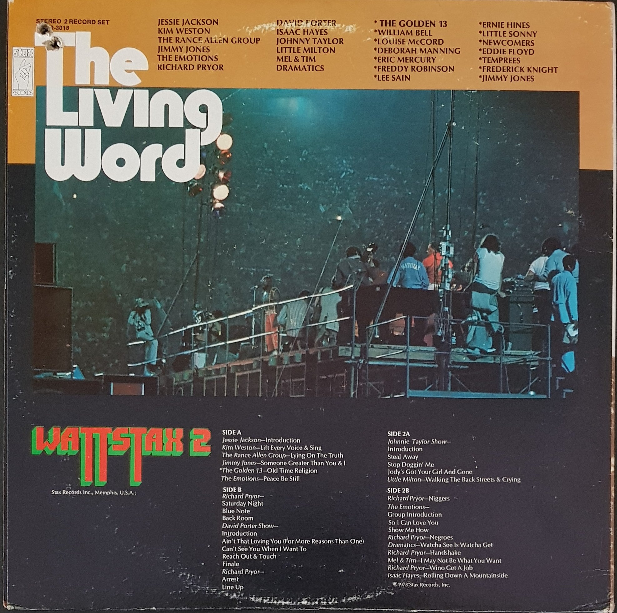Gatefold Cover w.Inner Sleeves. 1973 Stax STS 2-3018. Minor ring wear, small sticker stain & 2 drill holes in cover. Mark on D2c The Emotions – Show Me How that will sound, otherwise super clean records.