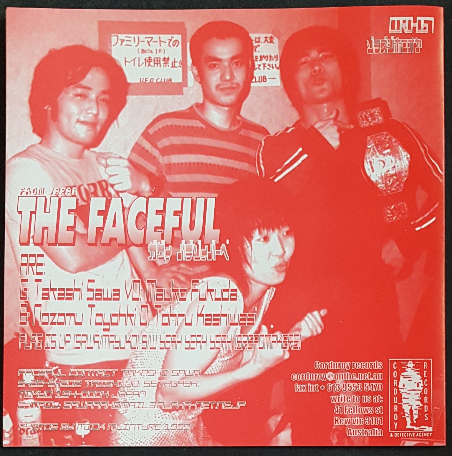 PS. Corduroy Records CORD-067. Australian / New Zealand Tour Single