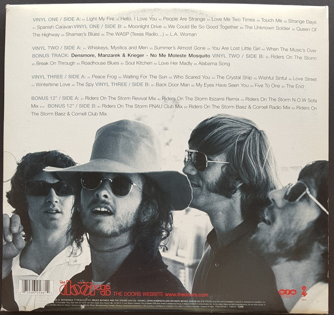 Fold Open Cover w. Inners. Limited Edition Set with Bonus 12" EP of Remixed Tracks. 37 Original Remastered Tracks + 1 Bonus Cut on 150gram Vinyl. 2000 ELEKTRA 7559-62558-1. Cover has hype sticker. Complete w.4 Inner Sleeves. Cover has surface and edge wear. Discs have had some of reaction to paper inners and there are spots / marks on the records. Play fine.